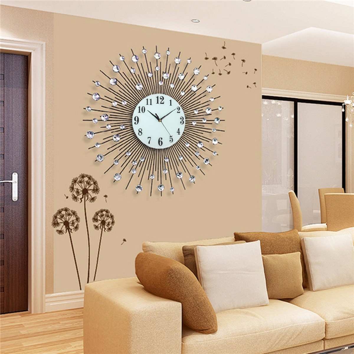 Настенные часы в интерьере гостиной