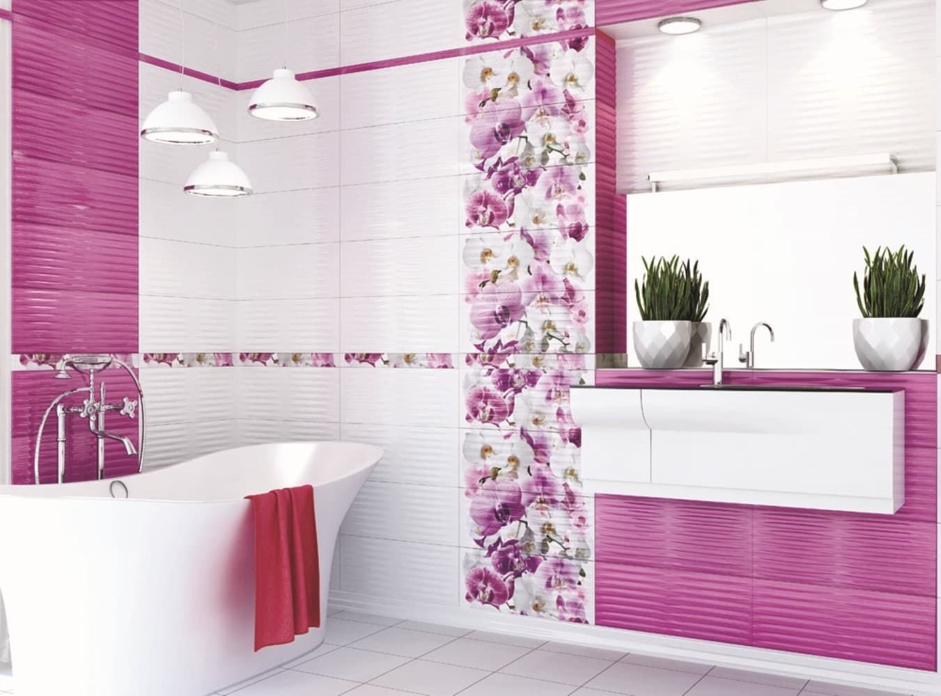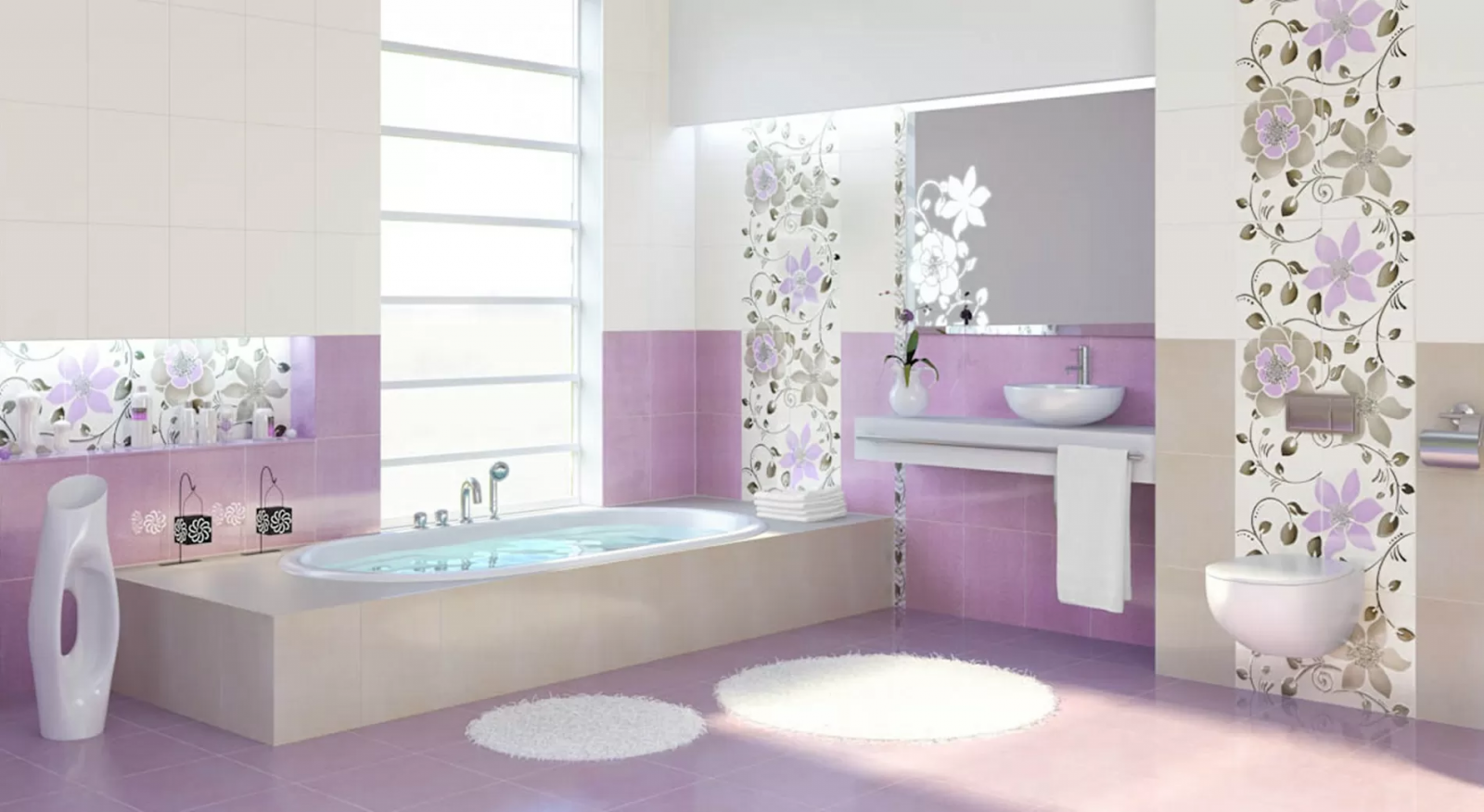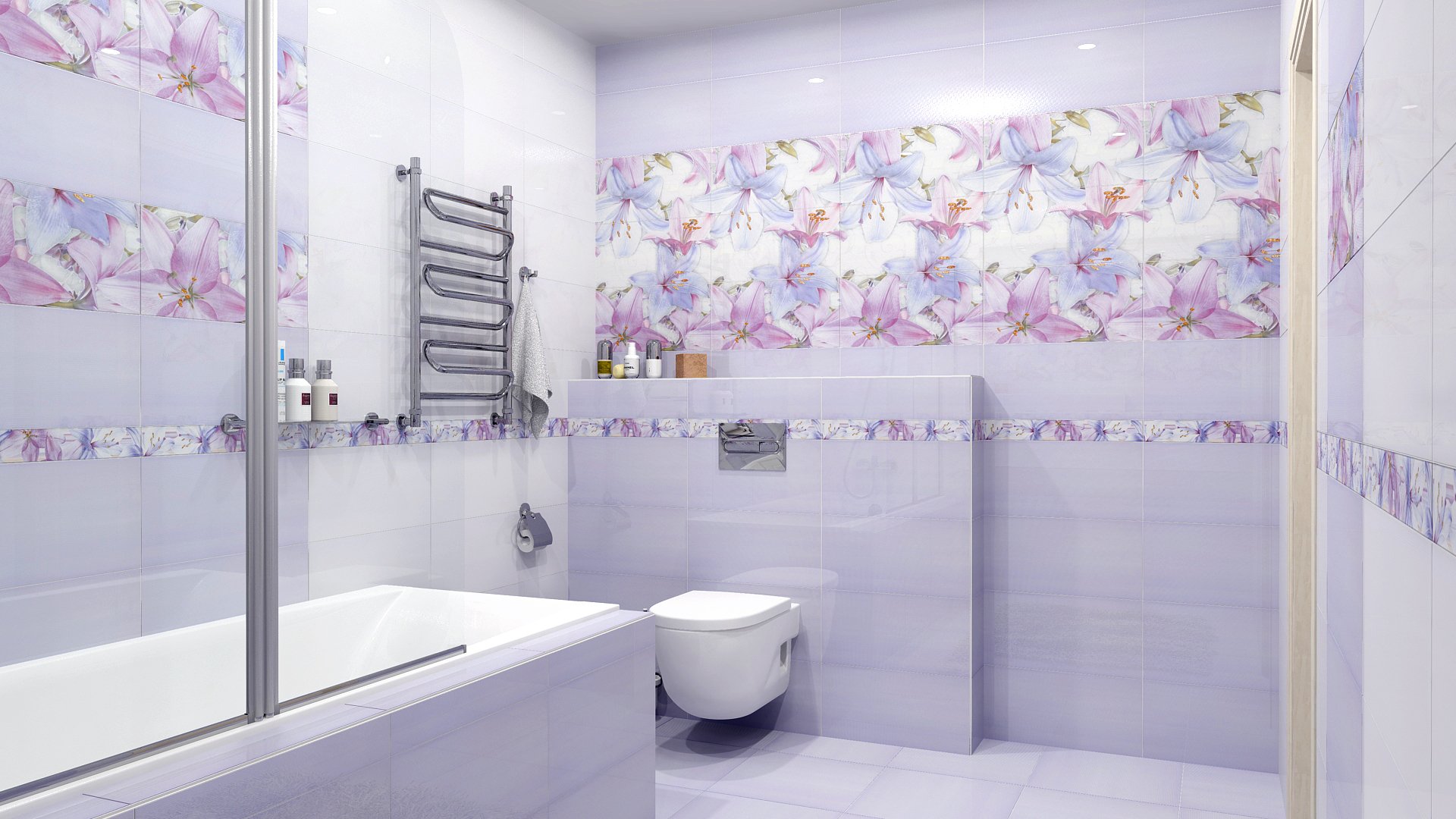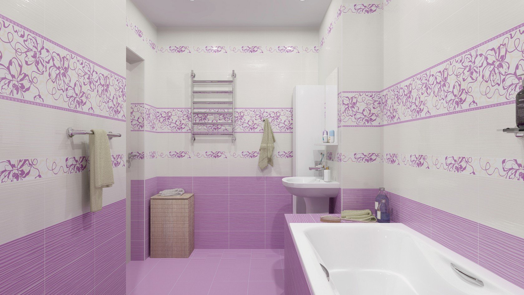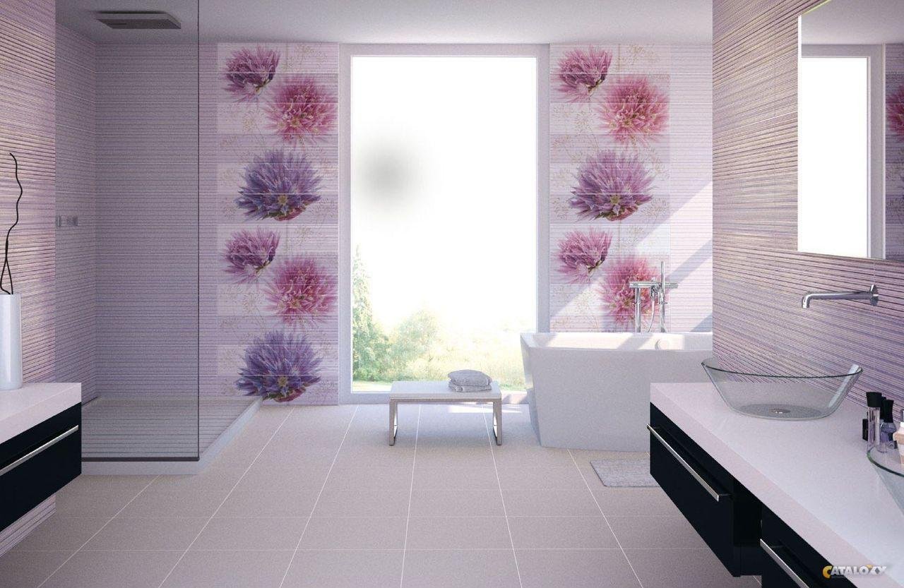 Сиренево белая ванная комната