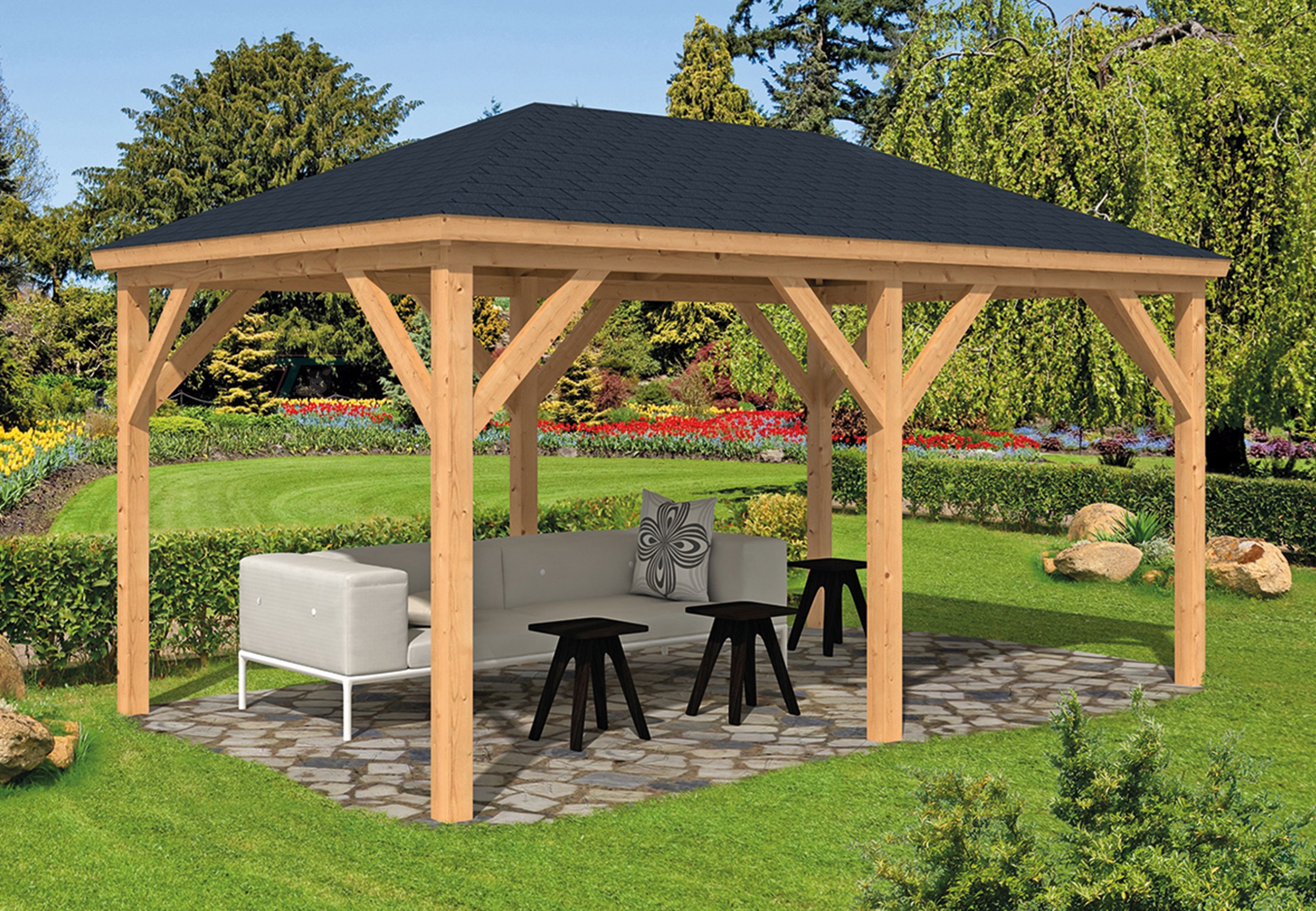 Беседка 3х4 с четырехскатной крышей с мангалом