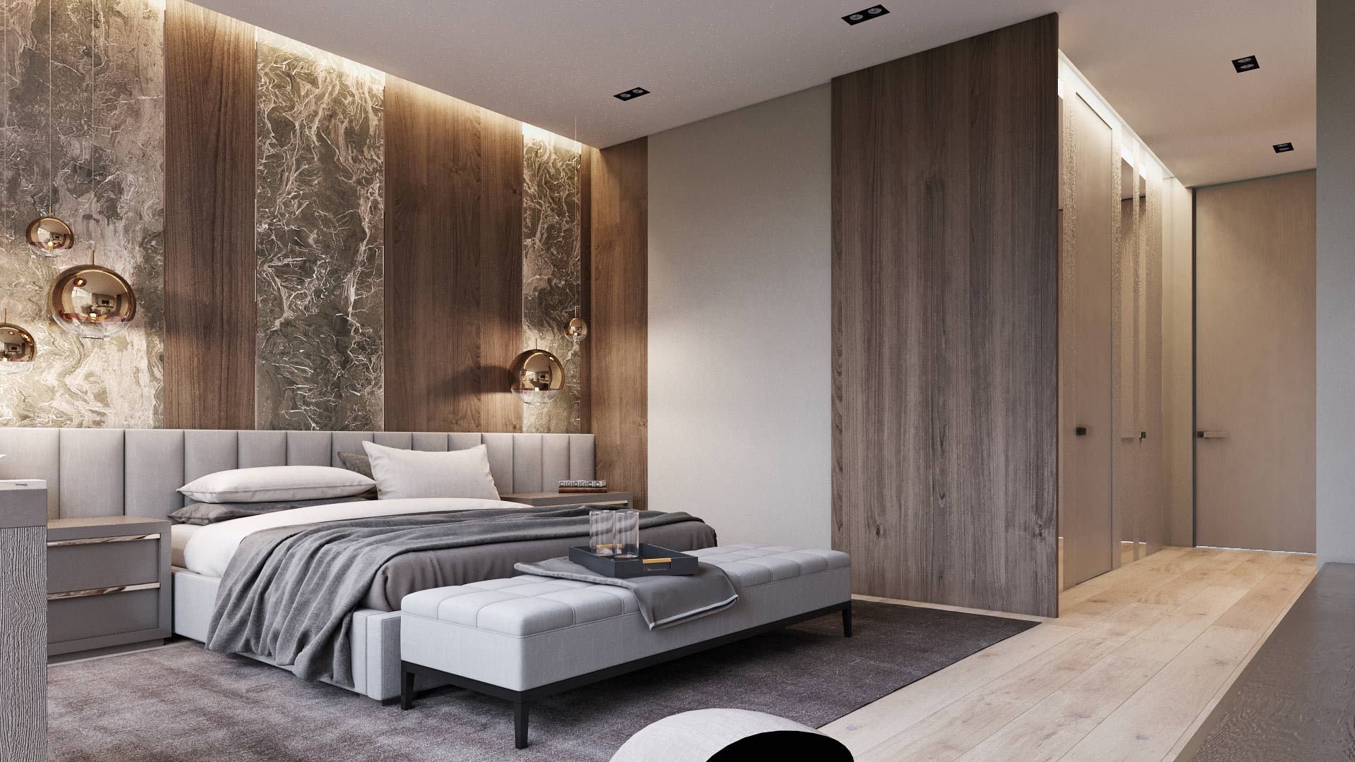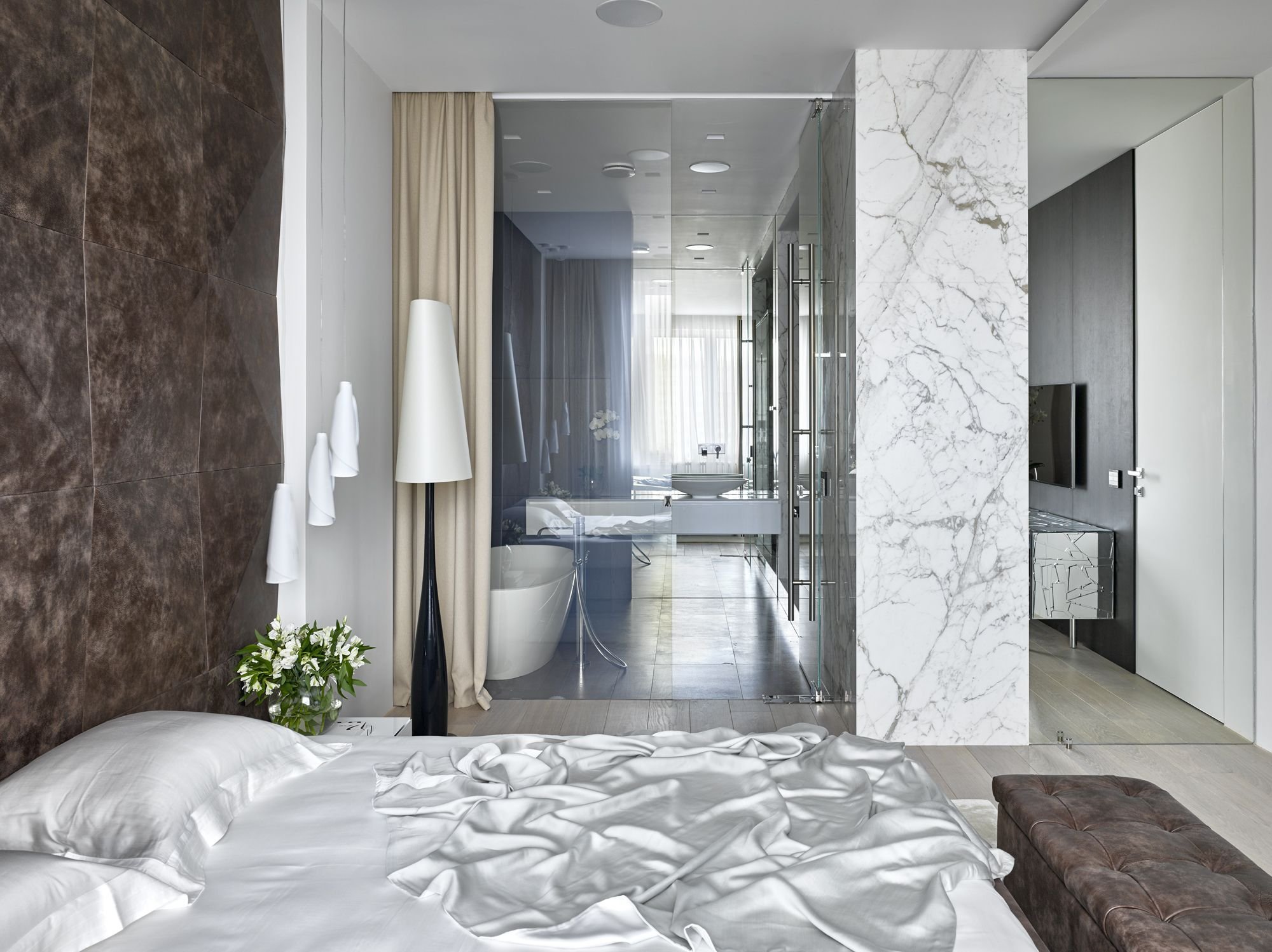Мраморный пол в спальне