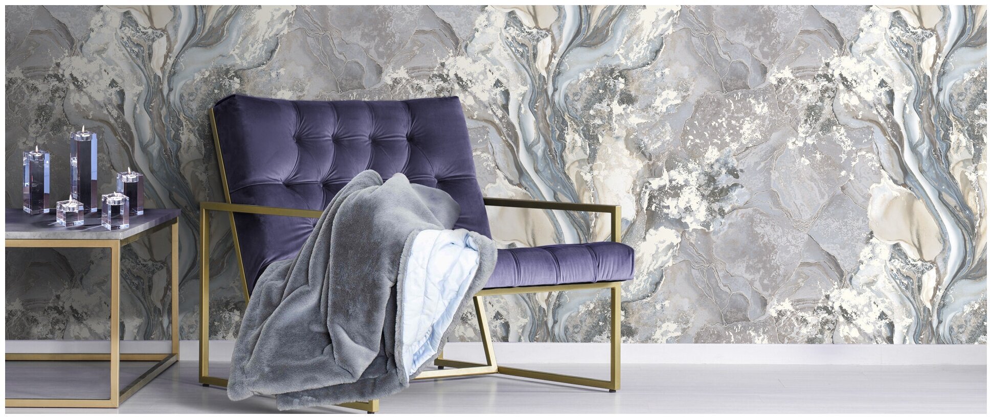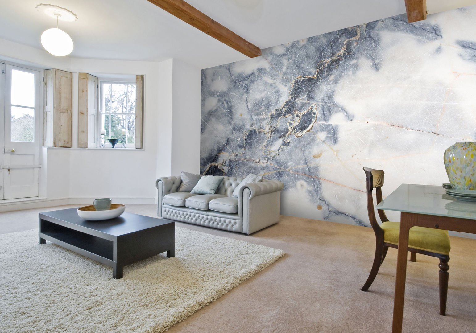 Обои с мраморным рисунком в интерьере