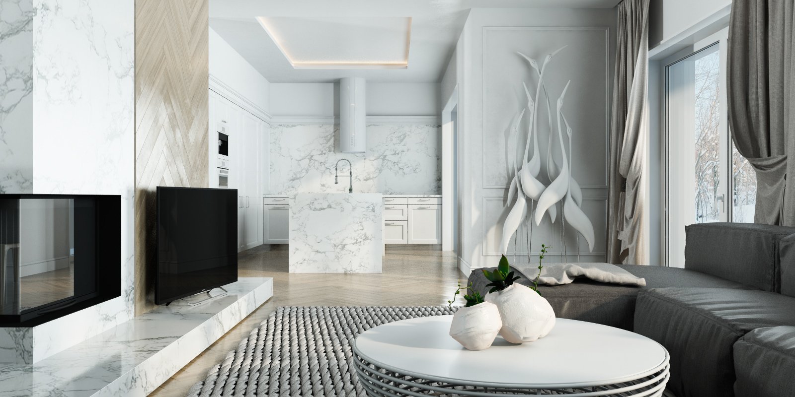 Интерьеры в стиле белый мрамор