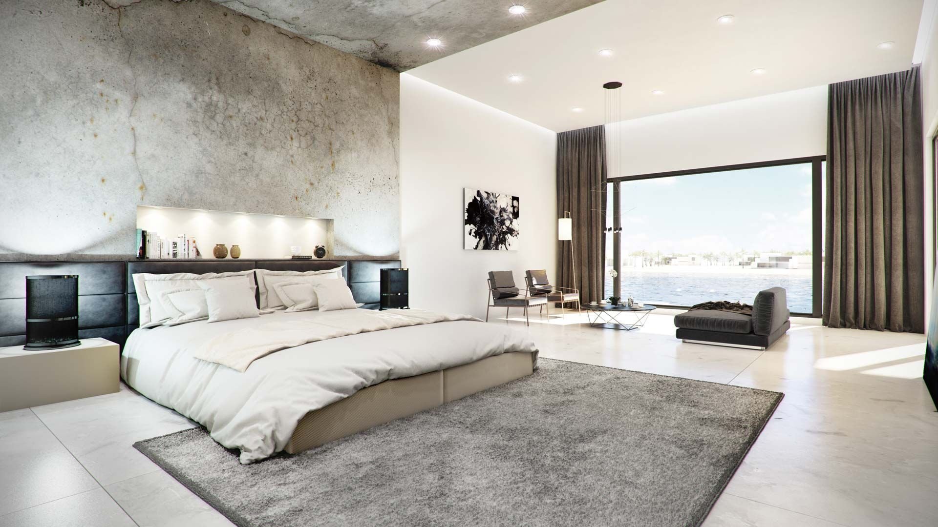 Бетон в интерьере спальни