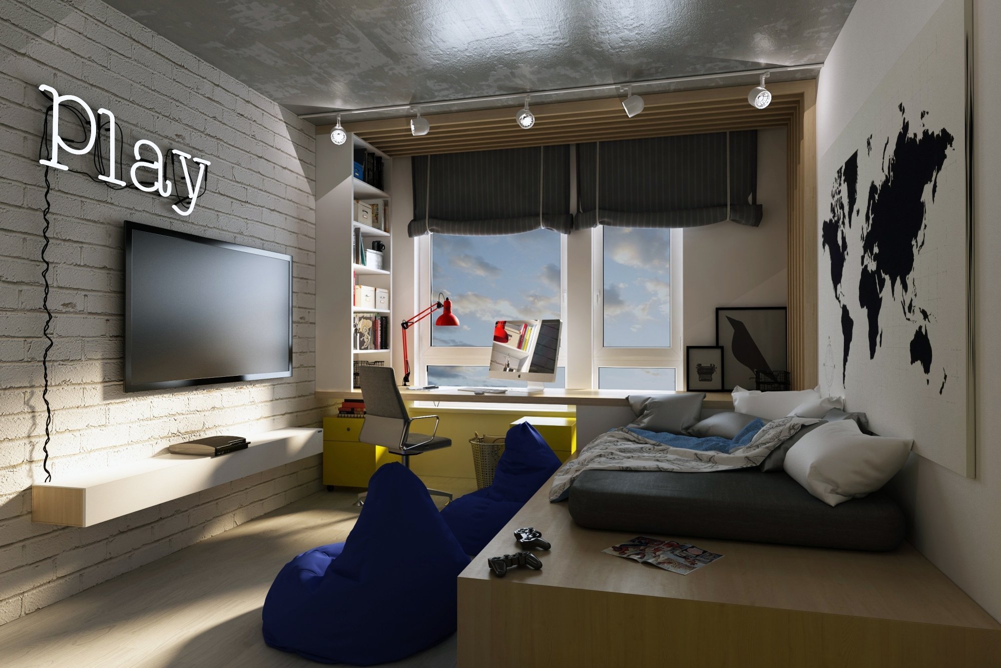 Геймерская комната с кроватью