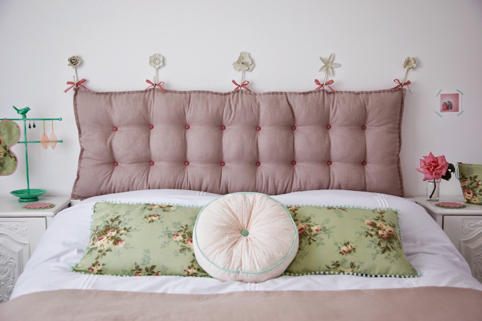Кровать с розовым изголовьем