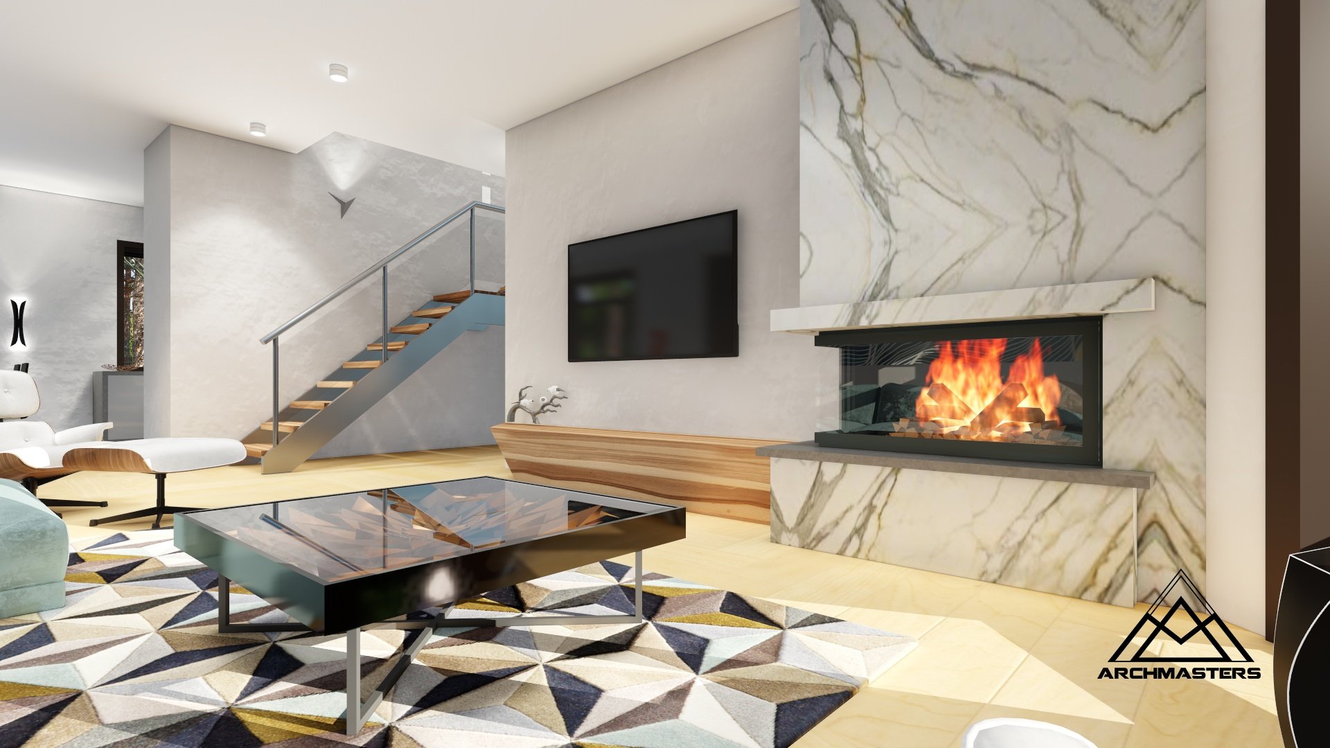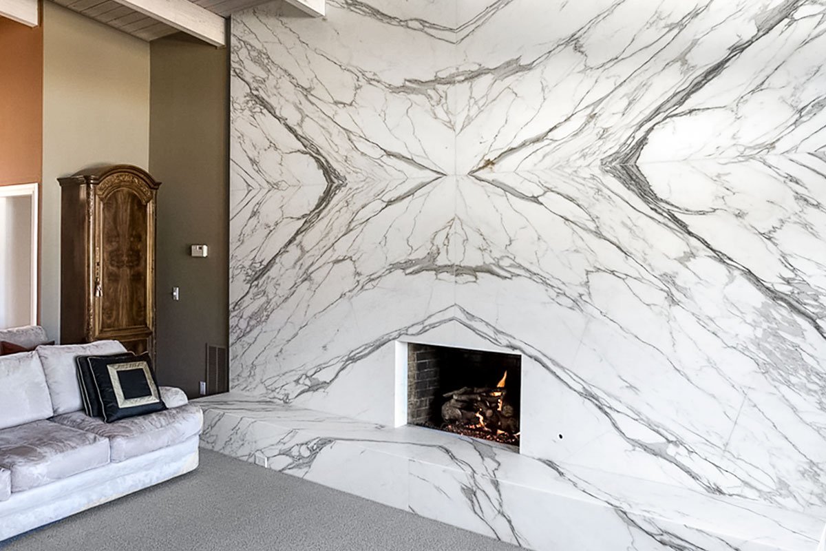 Мрамор Калакатта в интерьере гостиной