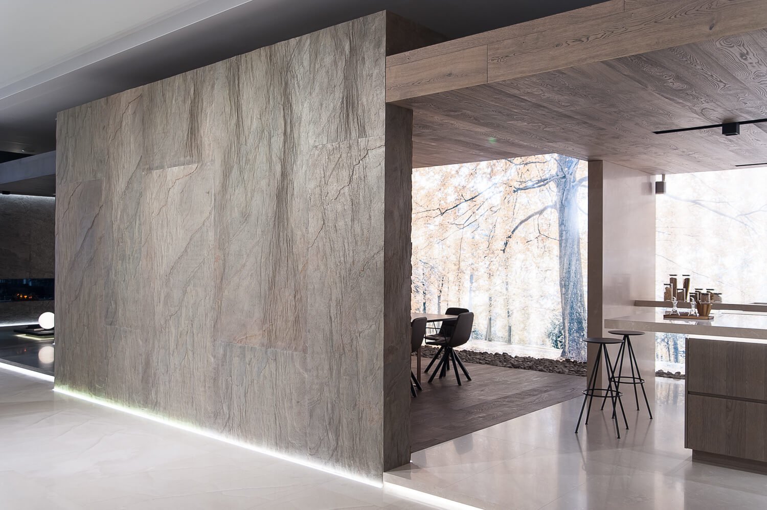 Гибкий камень и мрамор в интерьере кухни