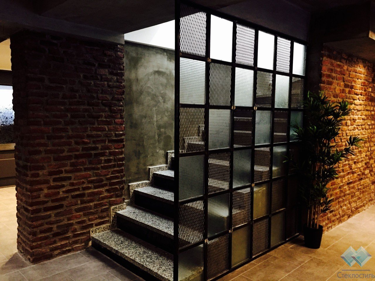 Перегородка из стеклоблоков лофт
