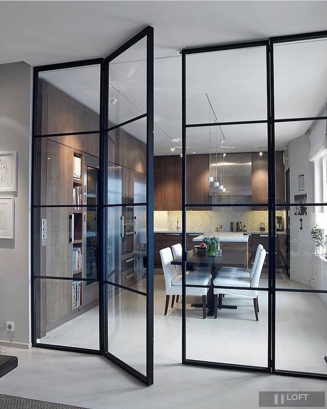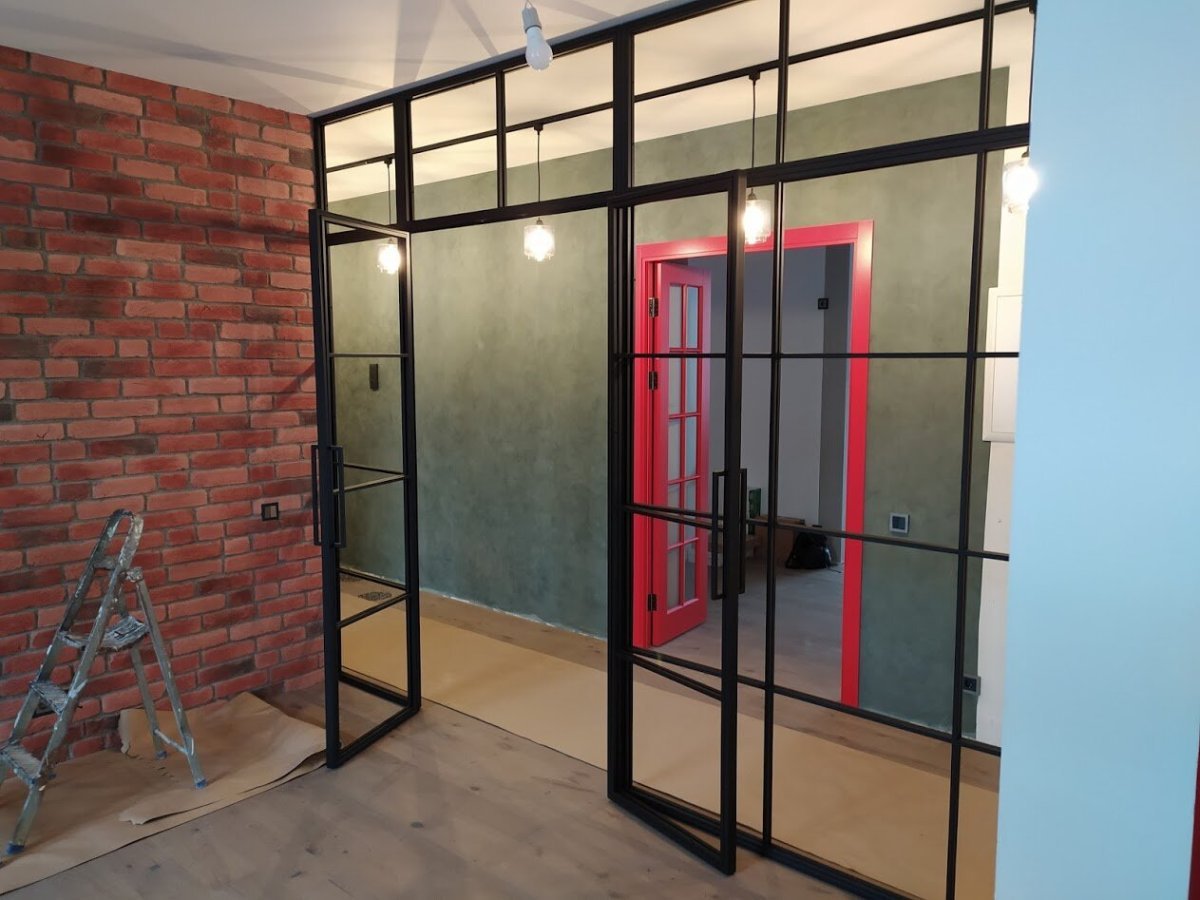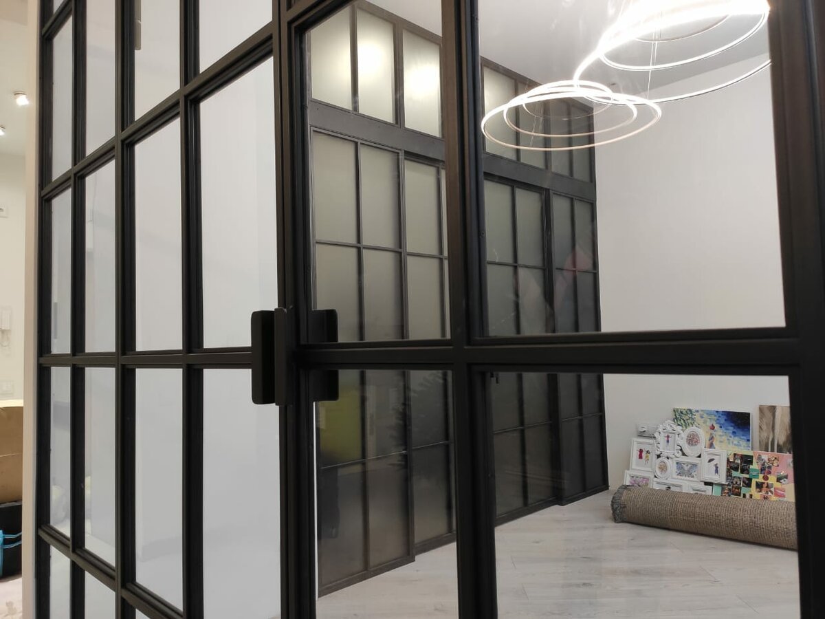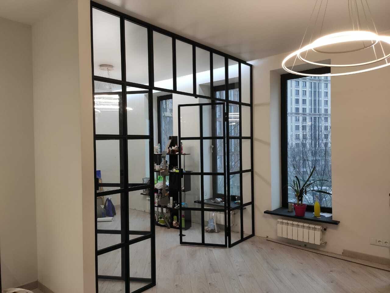 Лофт перегородки из металла и стекла