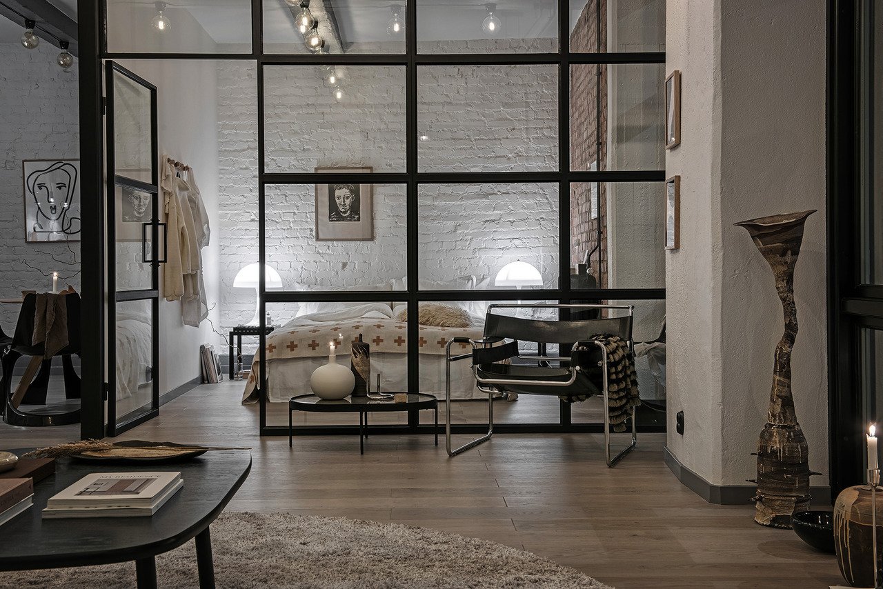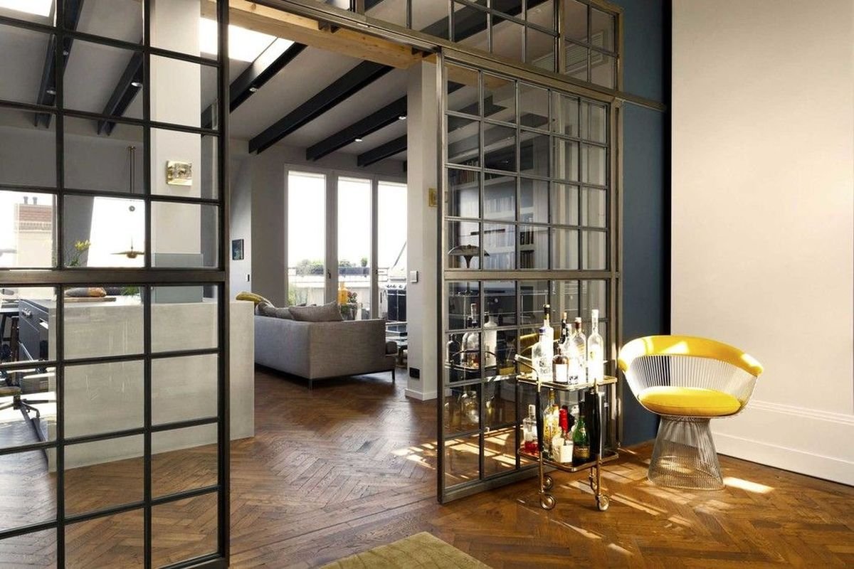 Стеклянная стена в квартире в стиле лофт