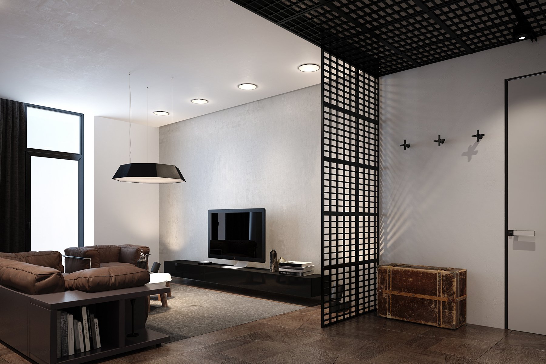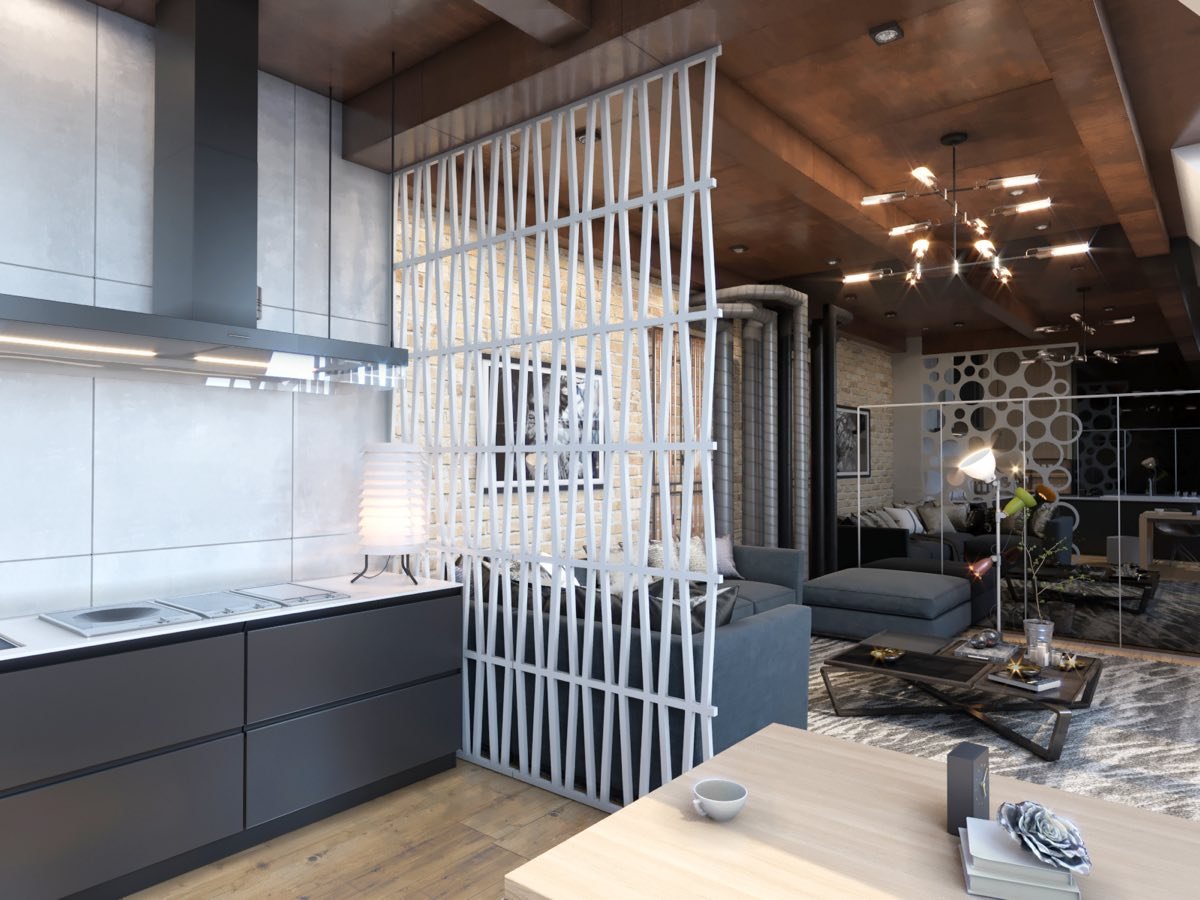 Перегородка для зонирования комнаты в стиле лофт