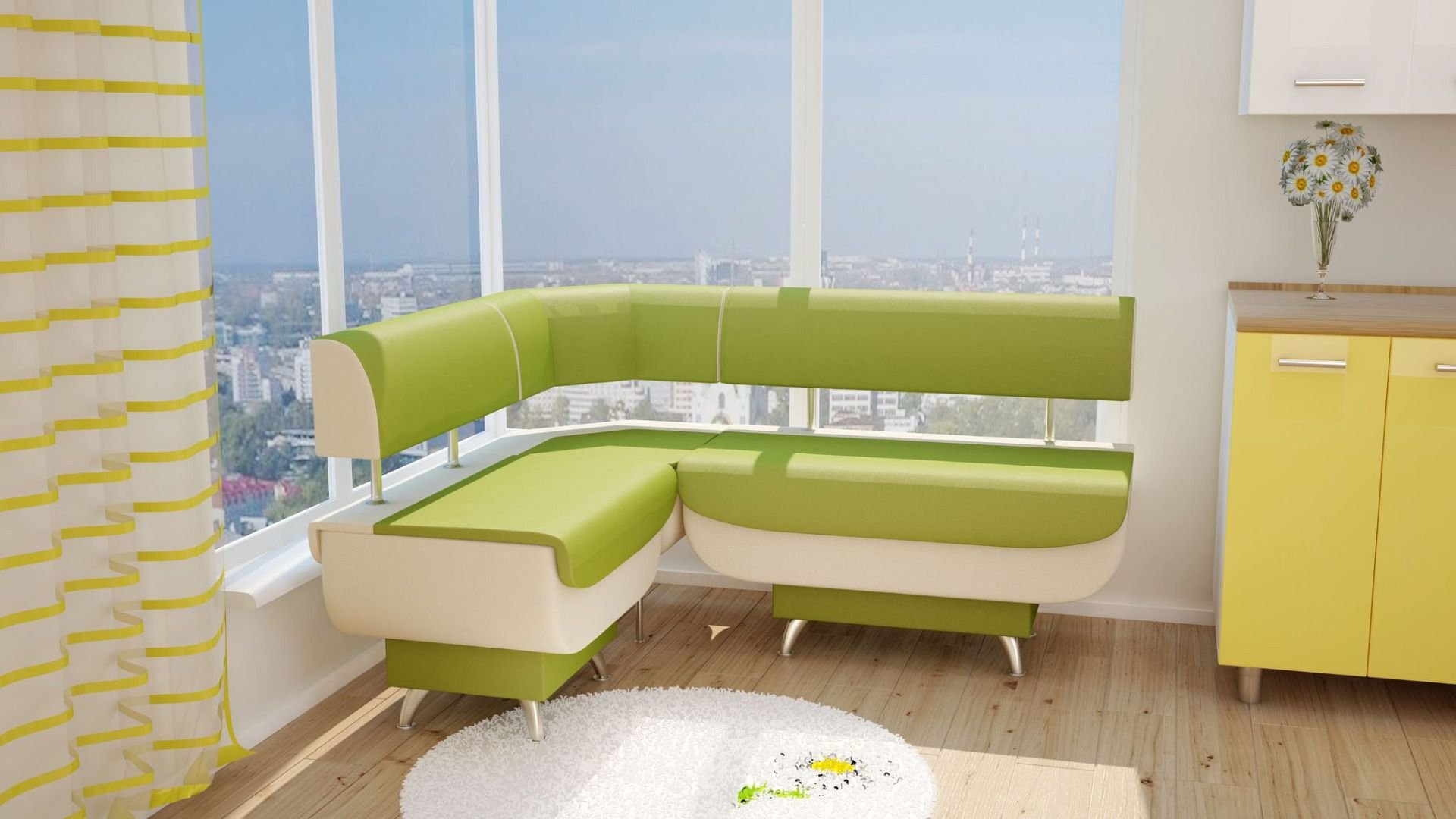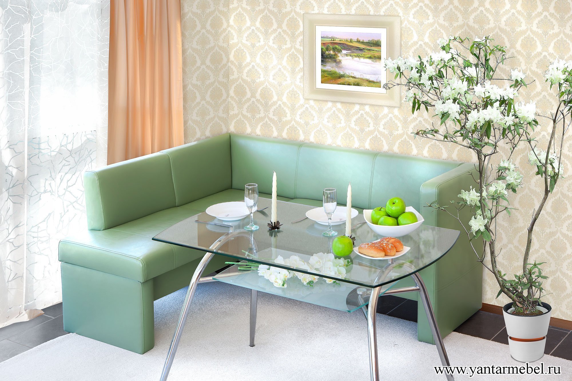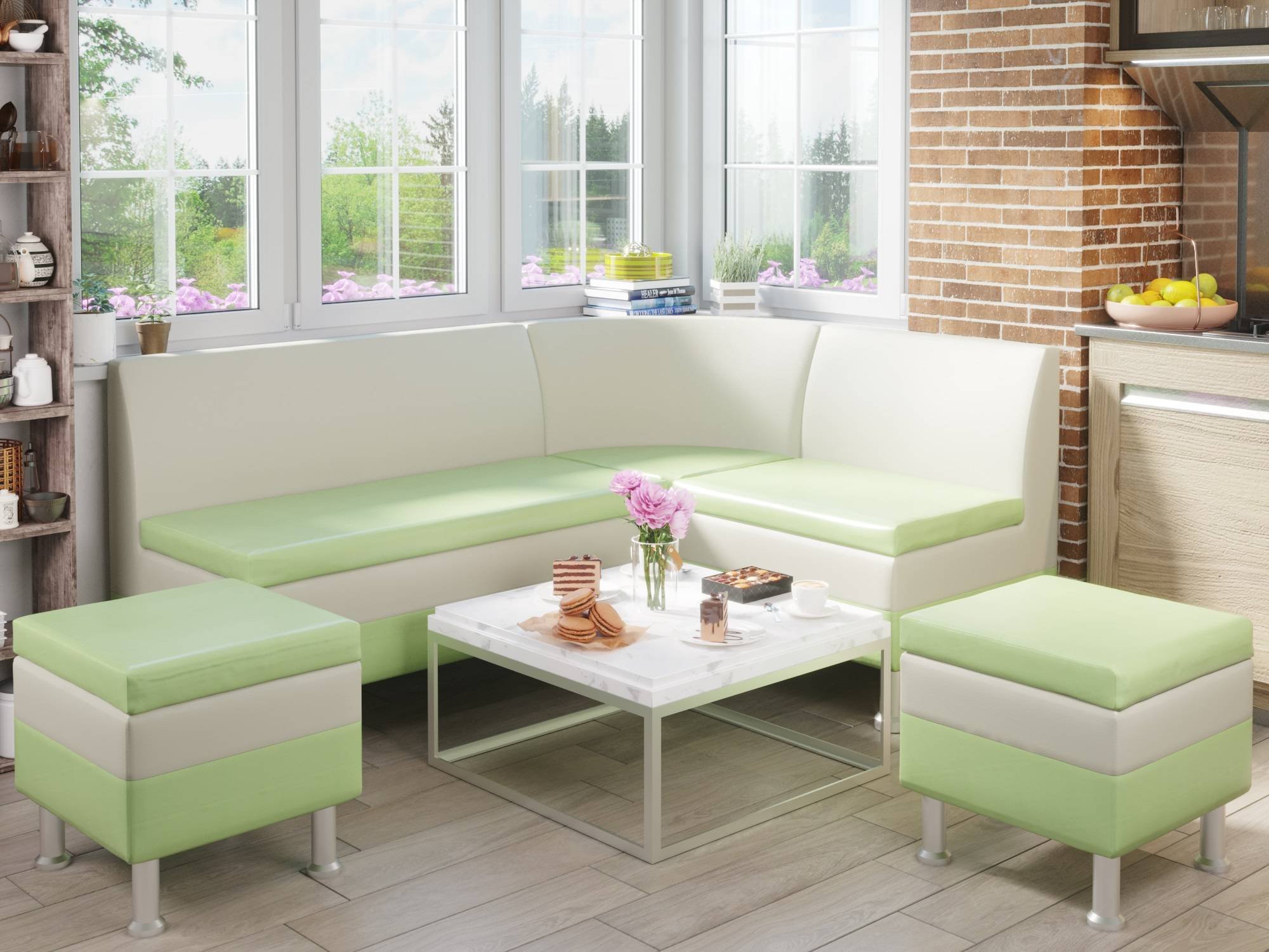 Салатовый диван на кухню