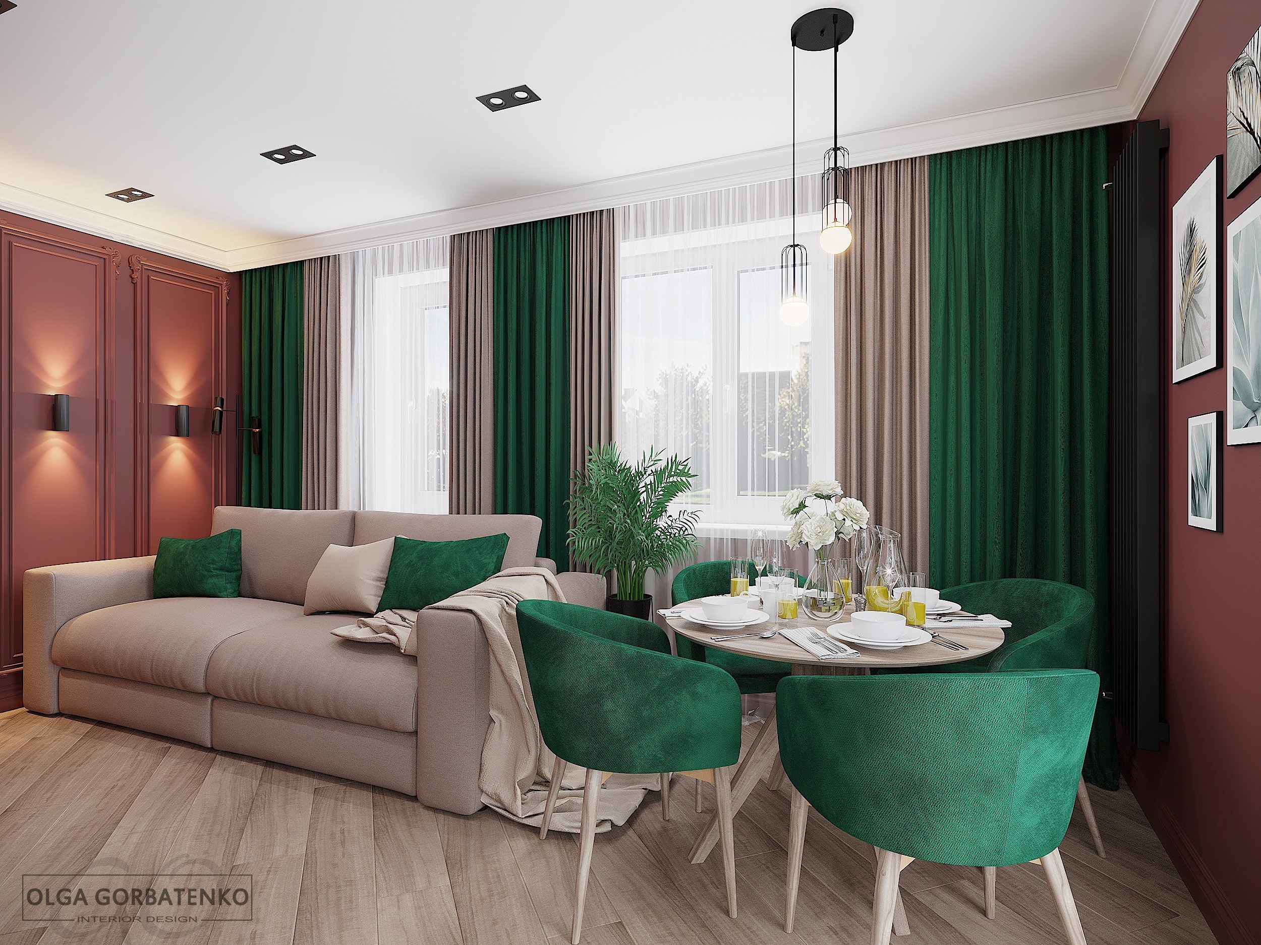 Изумрудный и розовый в интерьере
