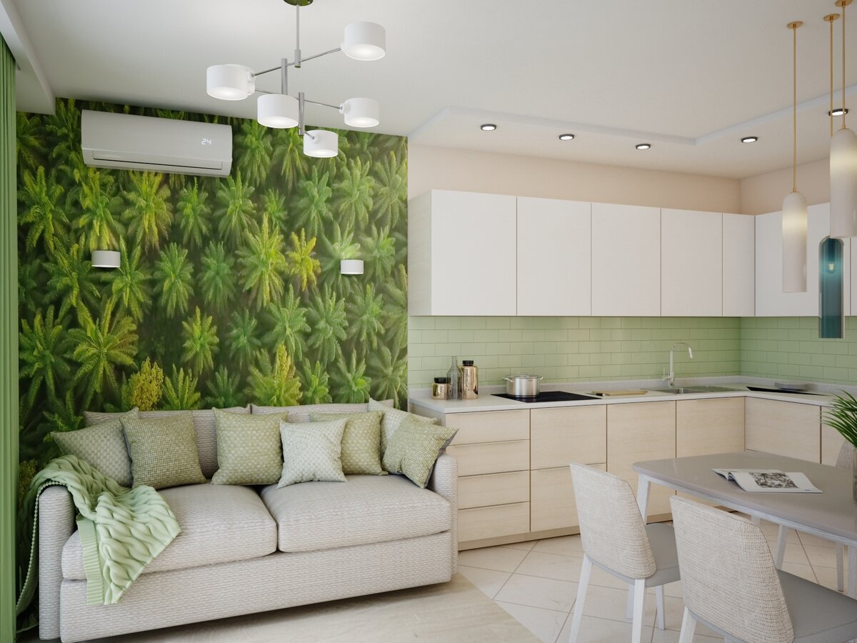 Кухня-гостиная в зеленых тонах