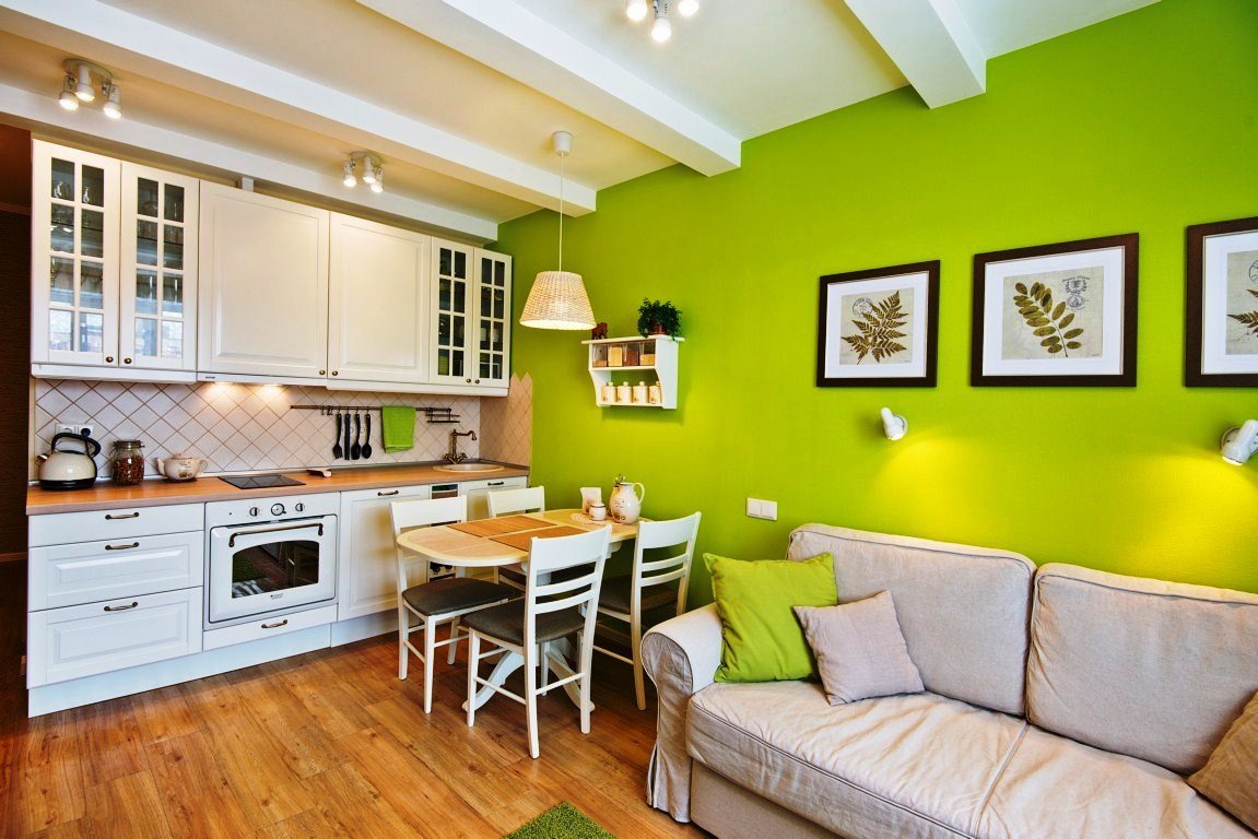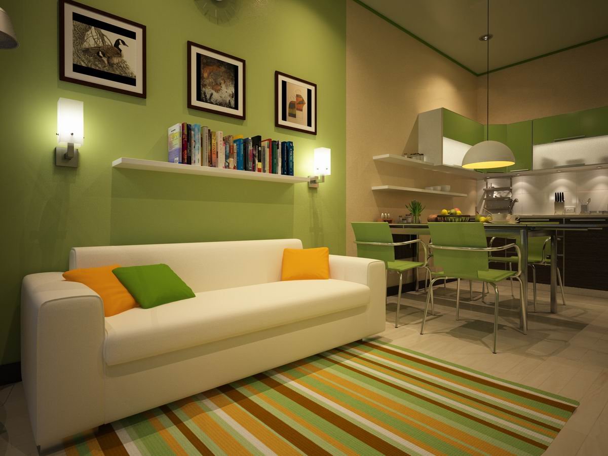 Кухня гостиная в зеленом цвете