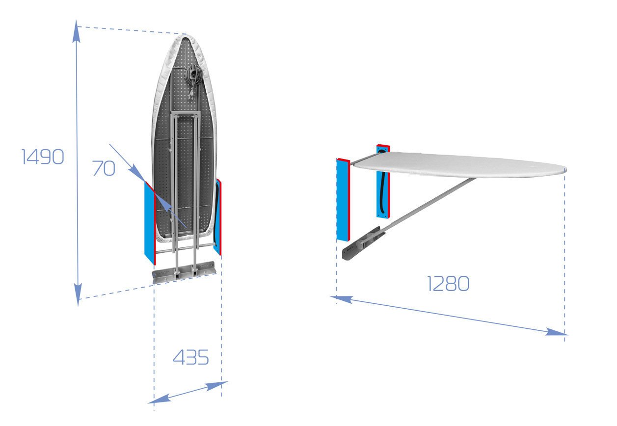 Гладильная доска настенная с зеркалом "смарт", 50,2х159,2х13,5 см