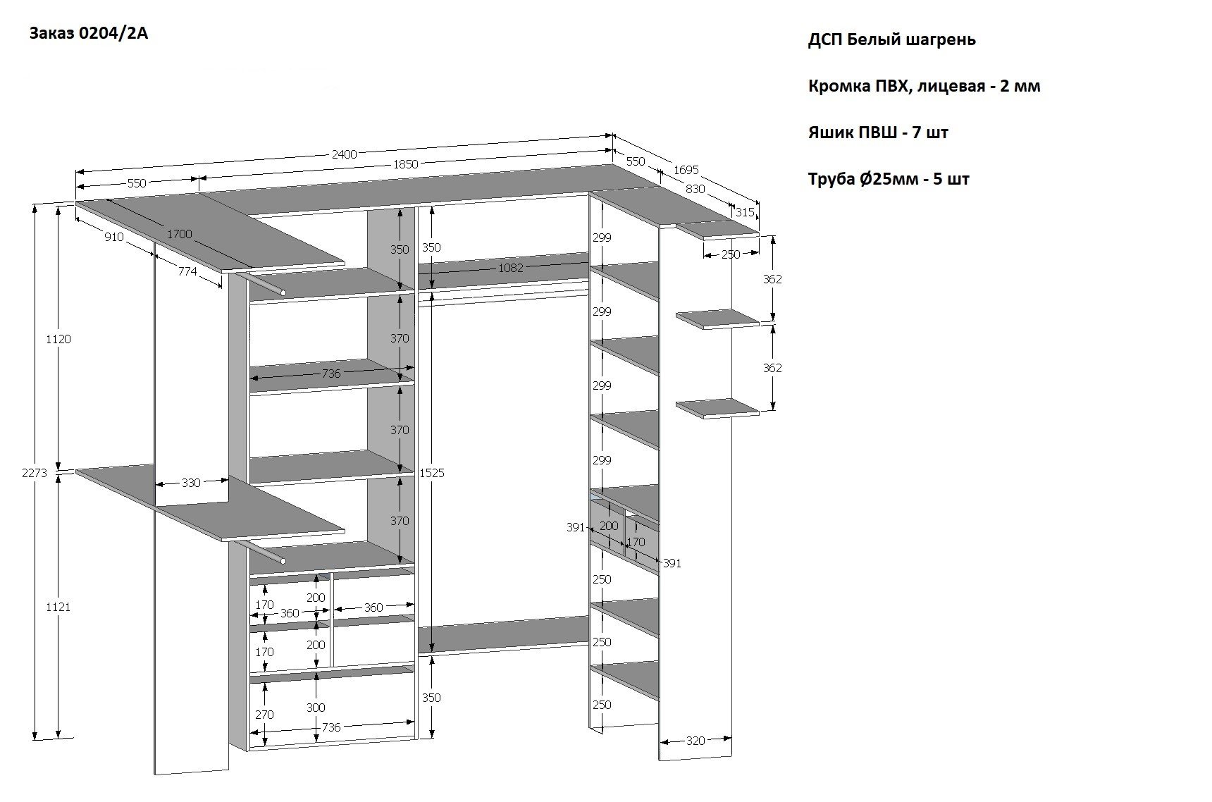 Гардеробная система 2,5 на1,5