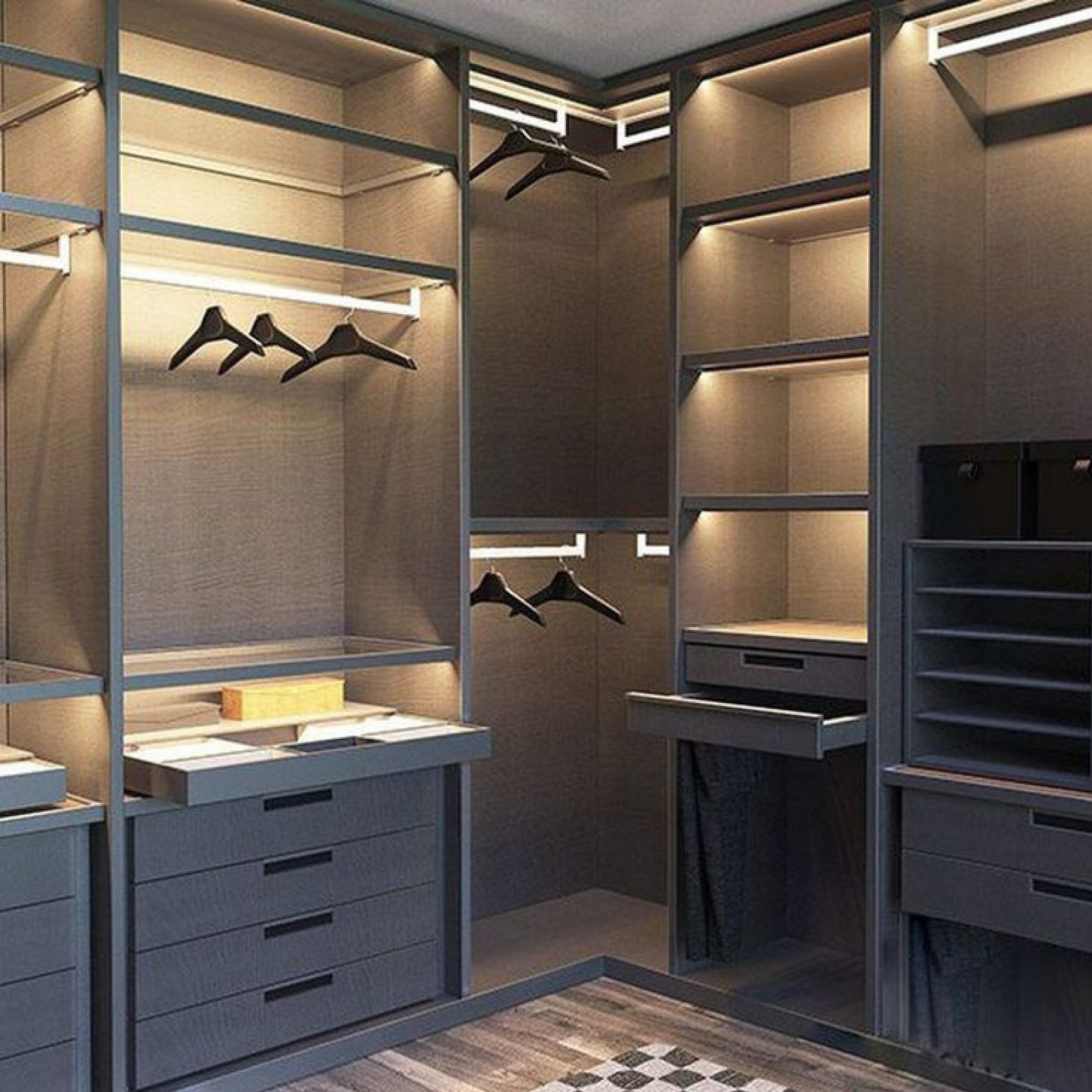 П-образная гардеробная комната