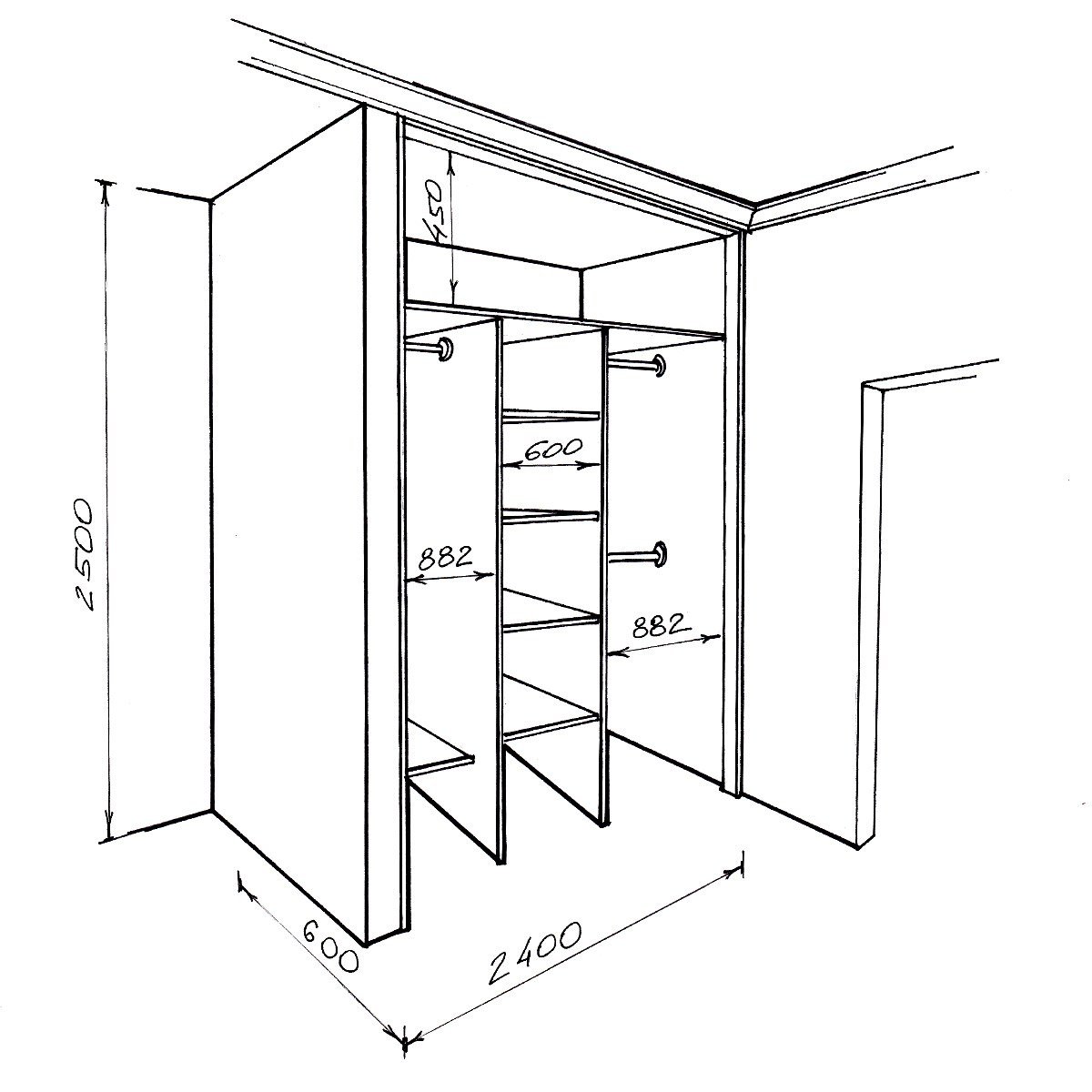 Шкаф купе чертежи глубина 430мм