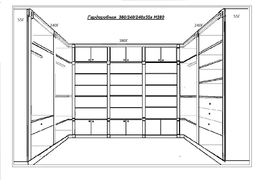 Гардеробная наполнение с размерами