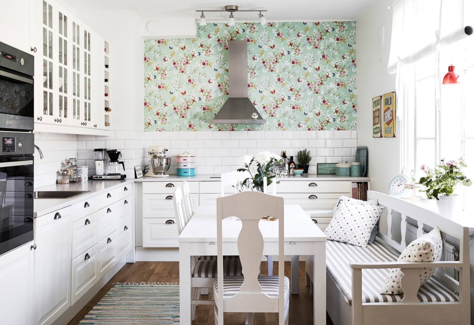 Обои для кухни с белой мебелью
