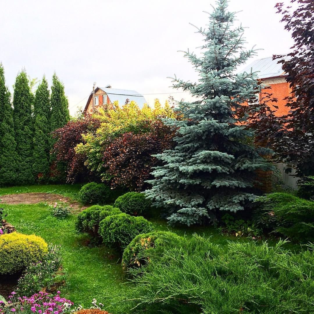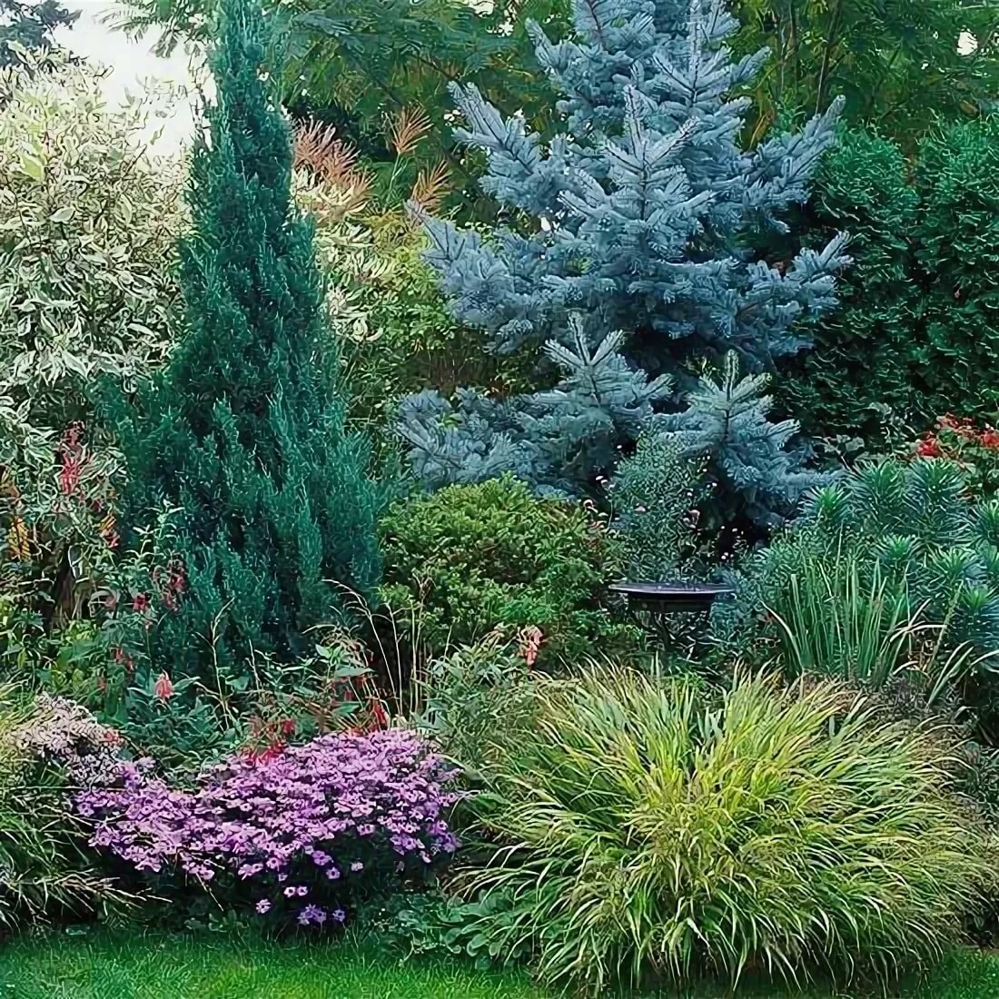 Хвойники голубая ель миксбордер