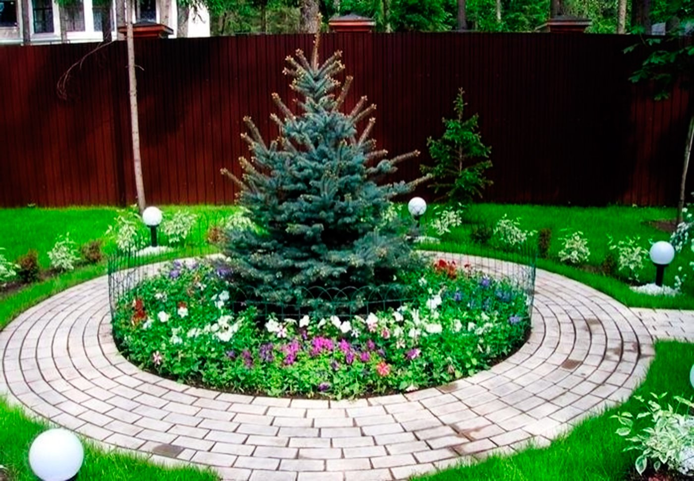Миксбордер с елью Глаука Глобоза