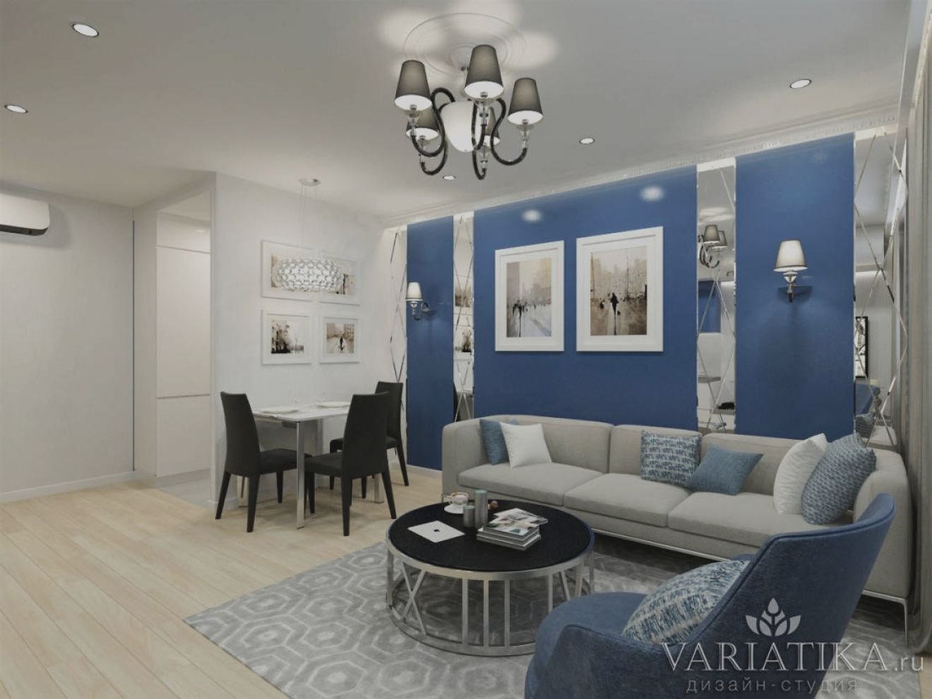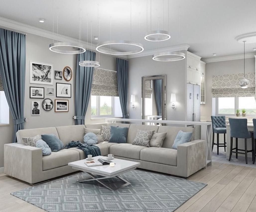 Гостиная в серо голубых тонах