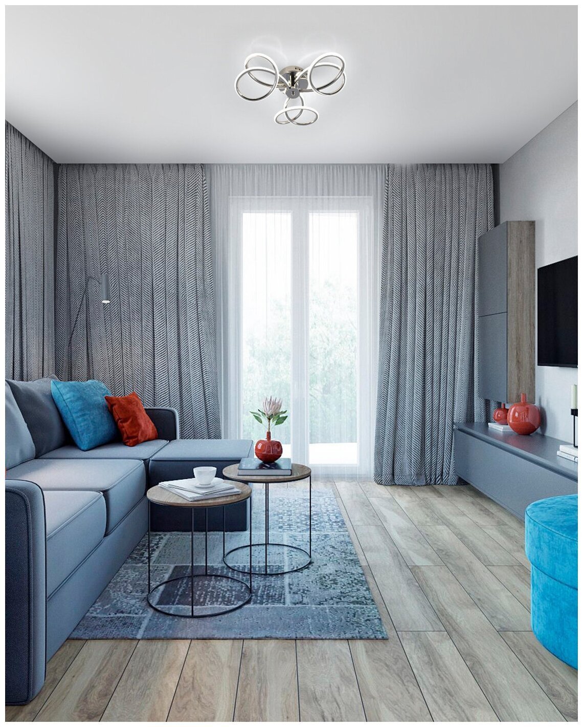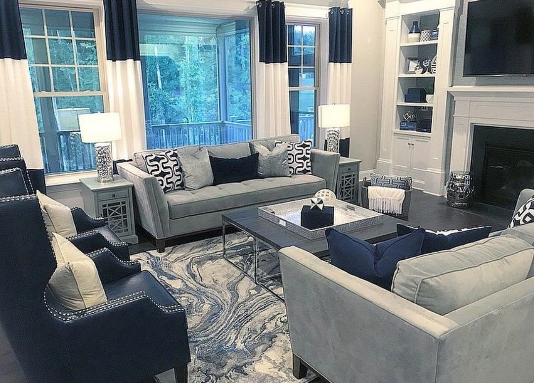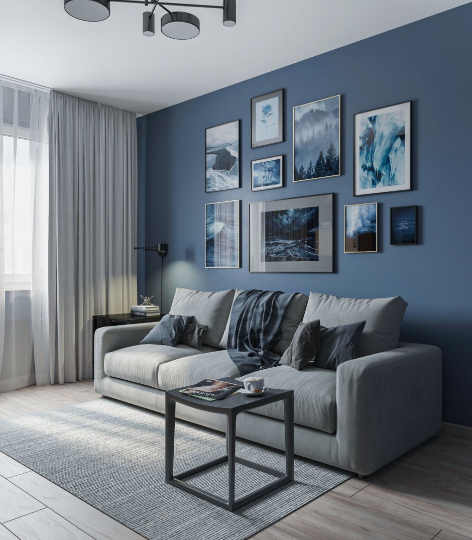Гостиная в серо синих тонах