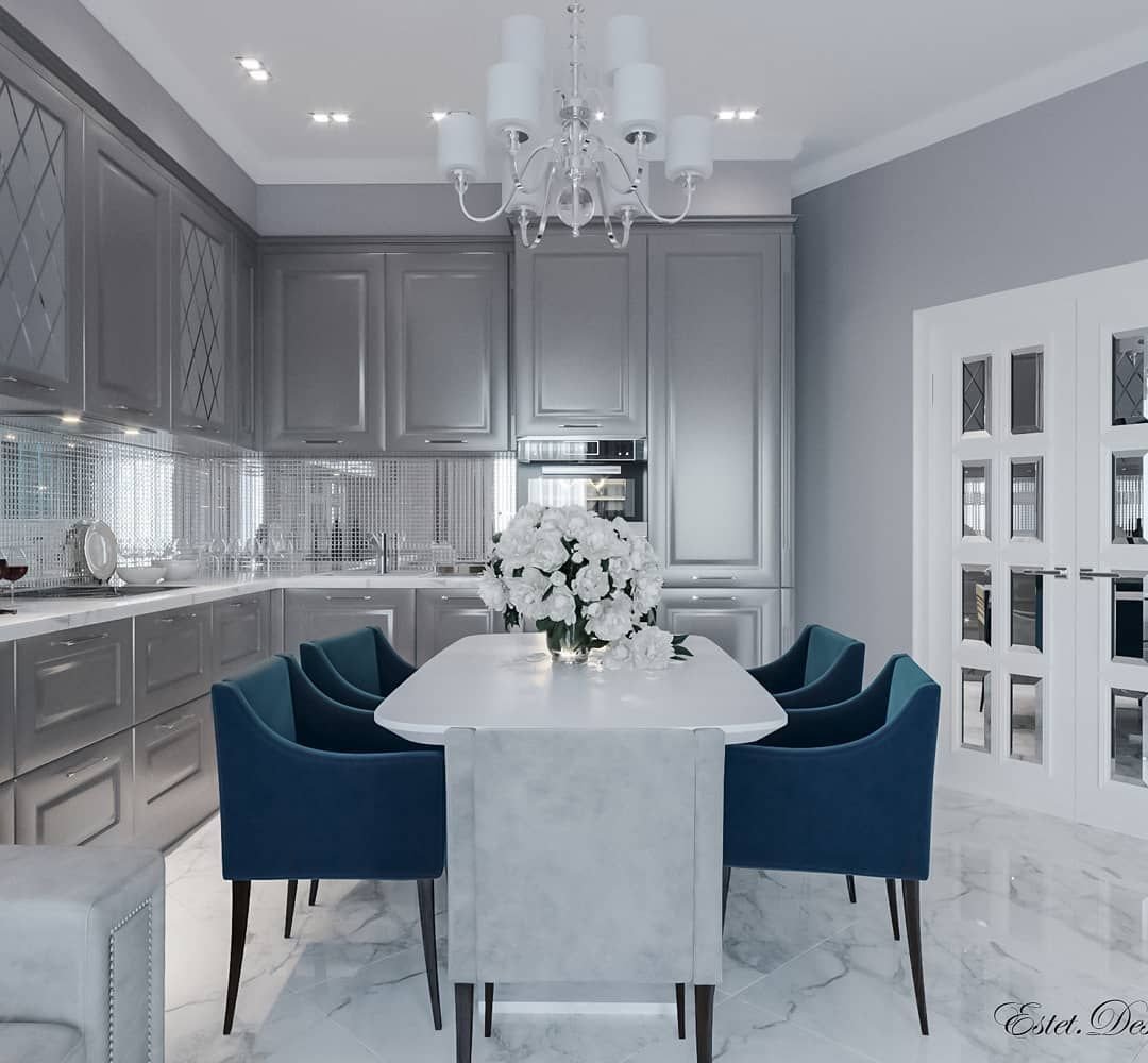 Интерьер кухни в серо голубых тонах