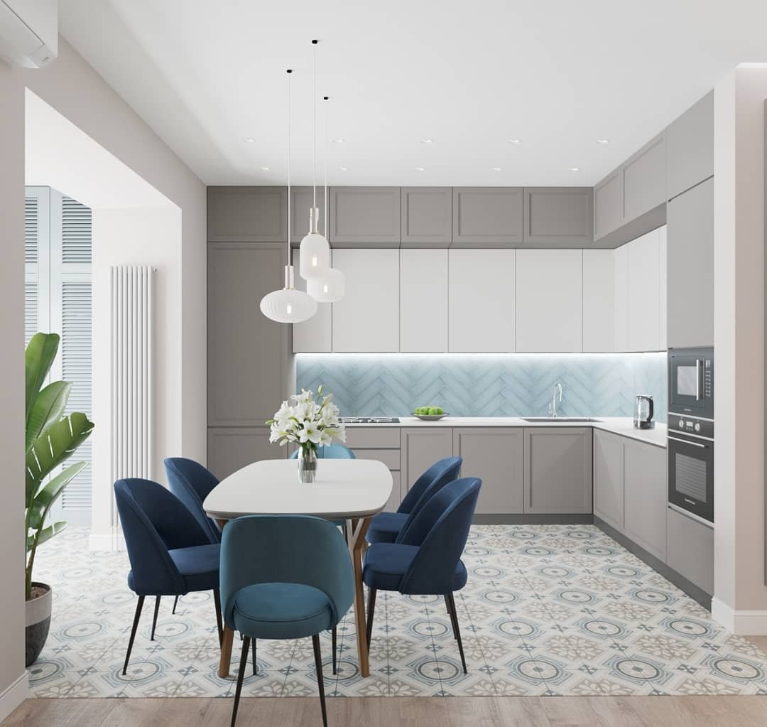 Кухня в серо-голубых тонах