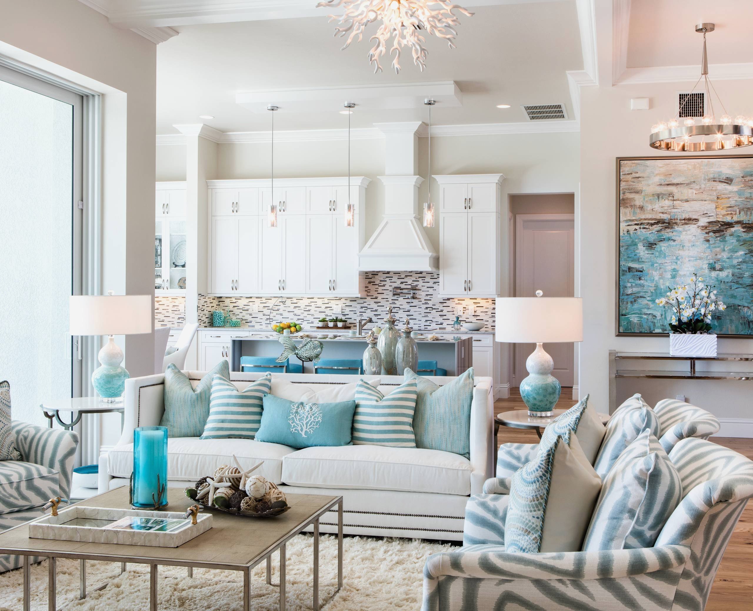 Гостиная в бело голубых тонах