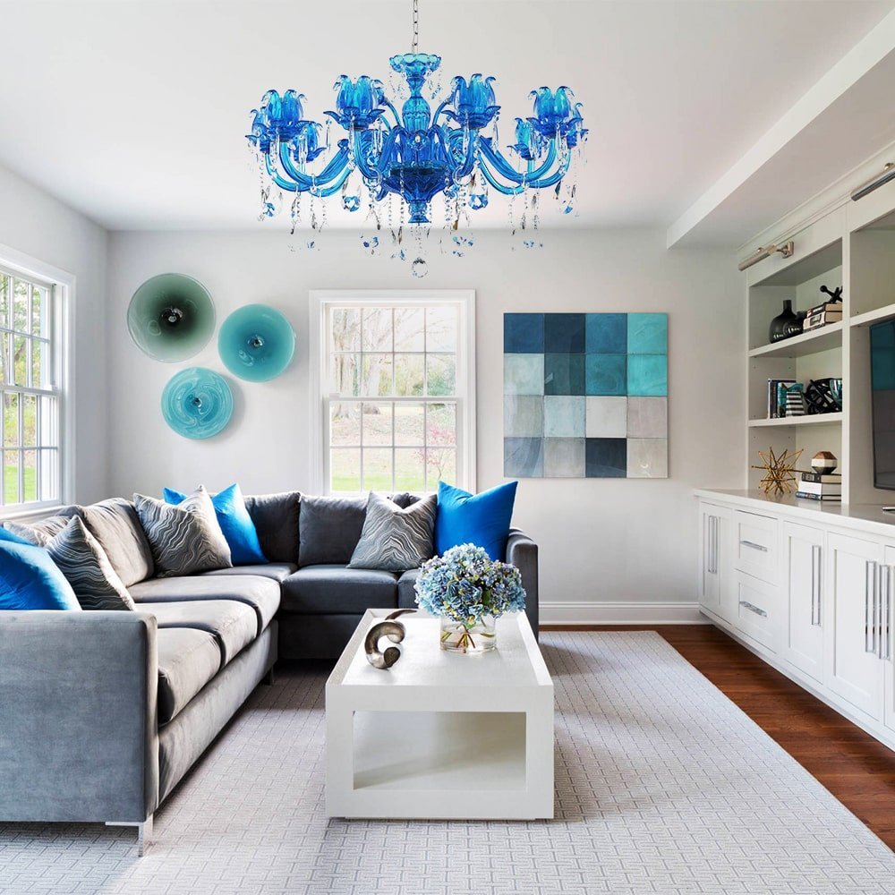 Голубой диван в интерьере