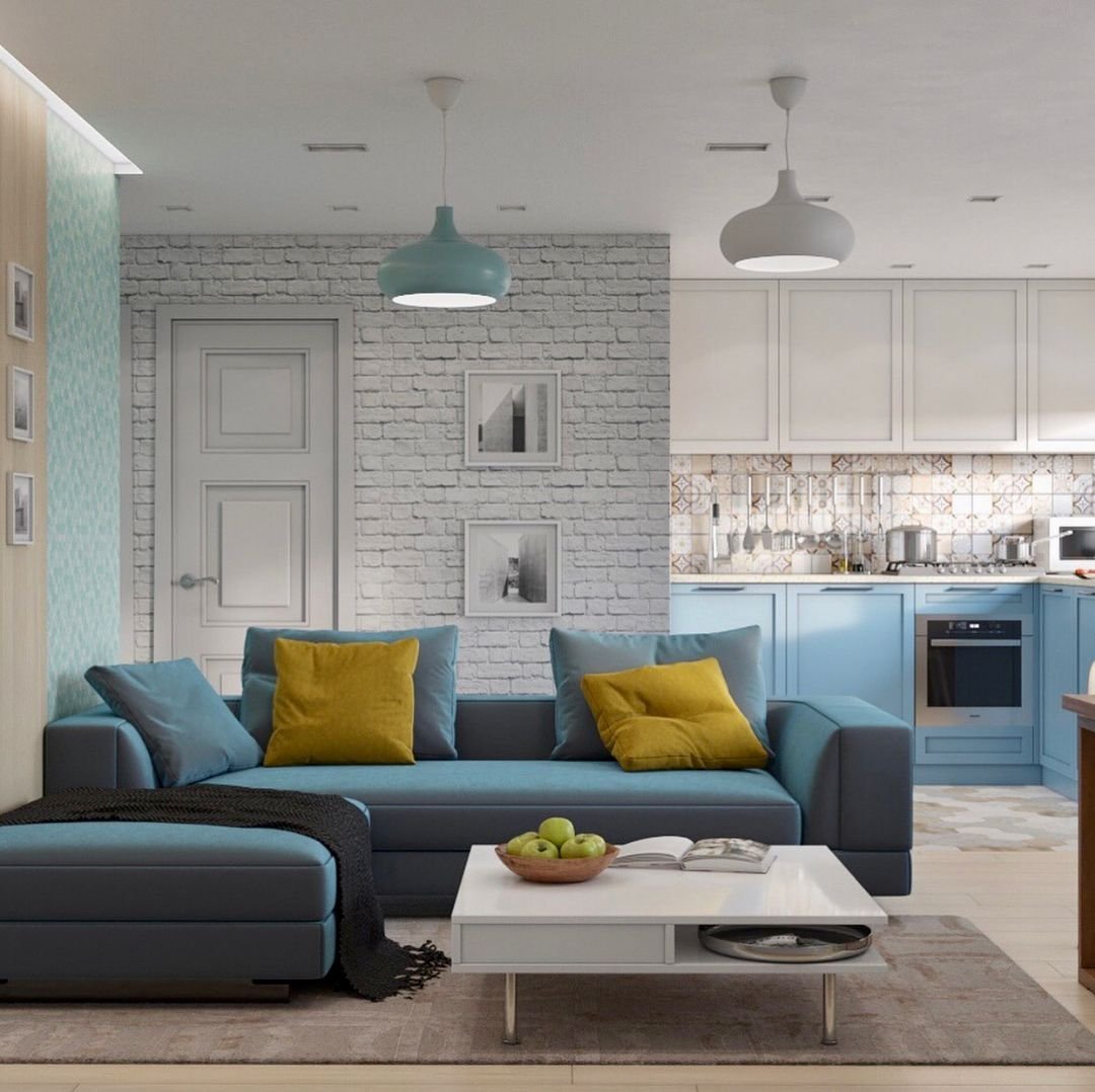 Кухня гостиная в бирюзовом цвете