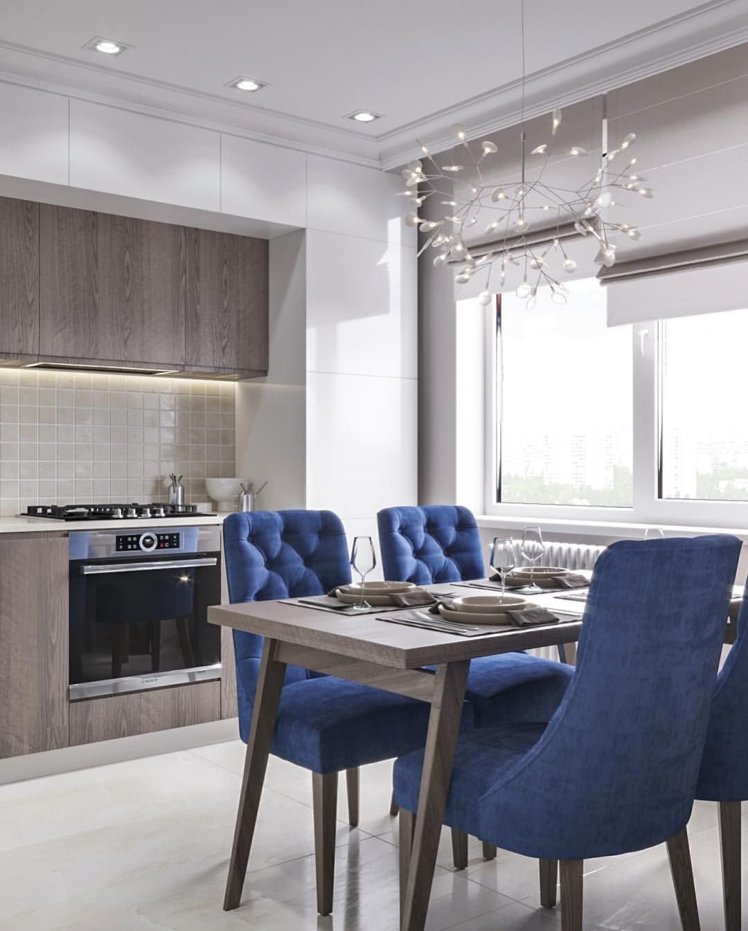 Кухни гостиные в голубом цвете
