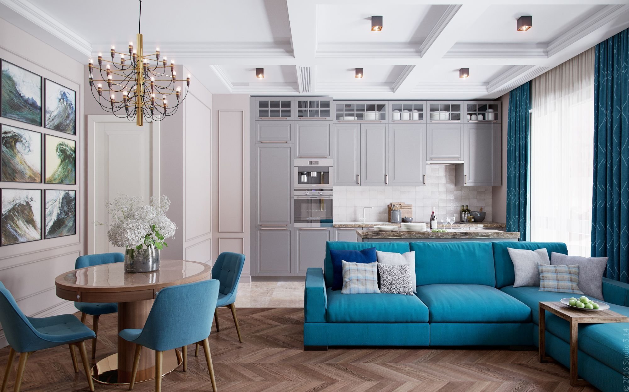 Кухня гостиная в бирюзовых тонах