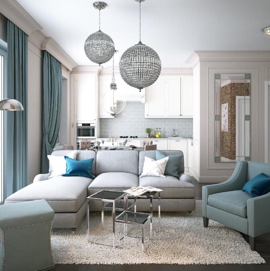 Гостиная Неоклассика с бирюзой