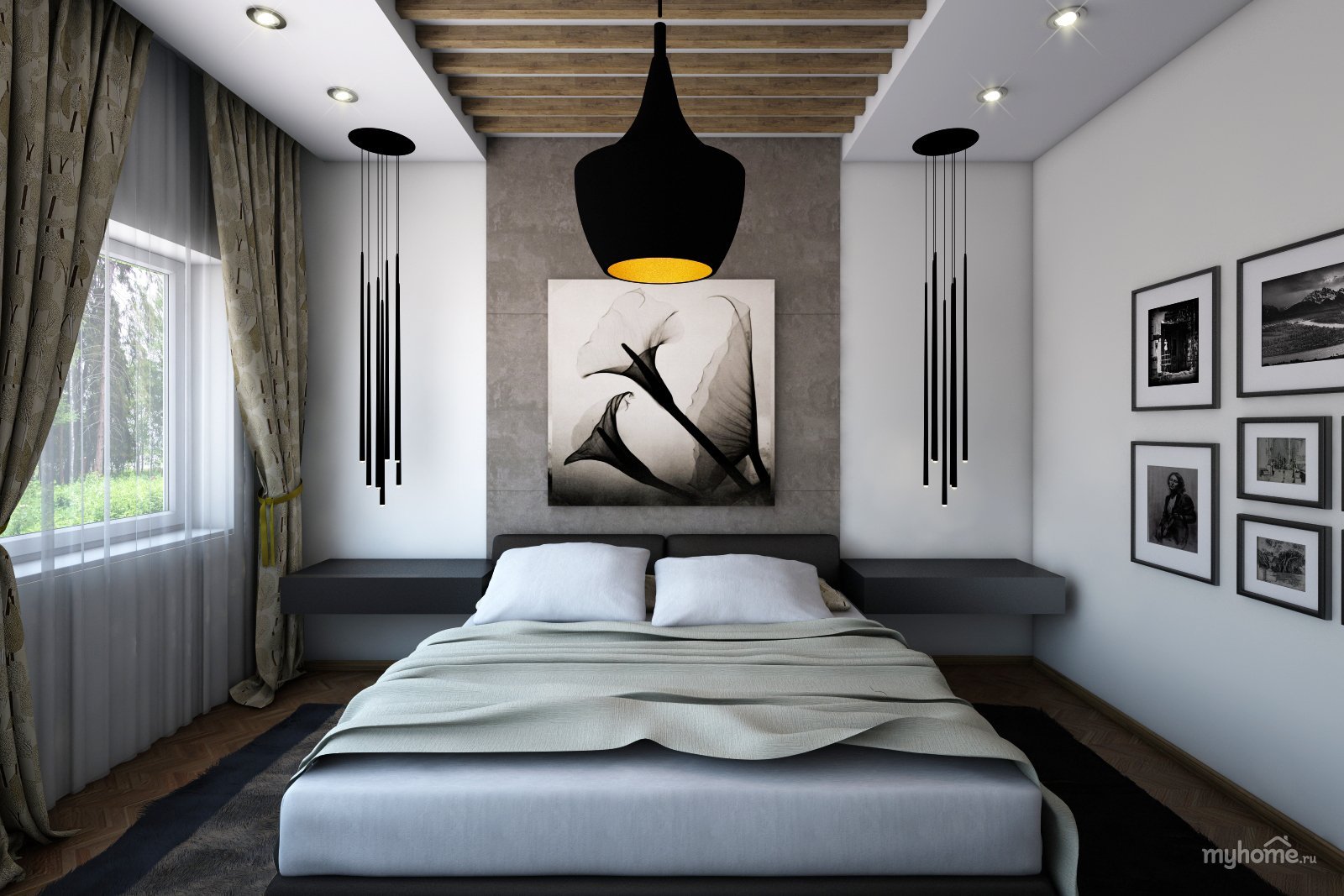 Узкая спальня Минимализм