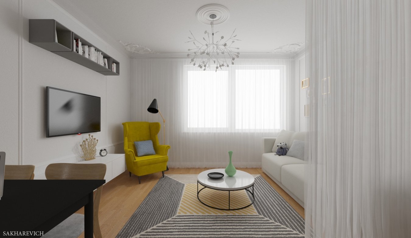 Гостинная 16 кв м Сканди