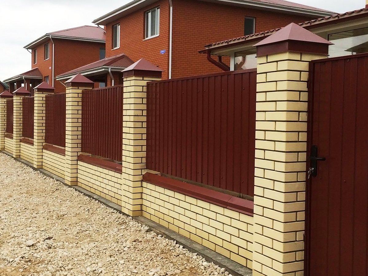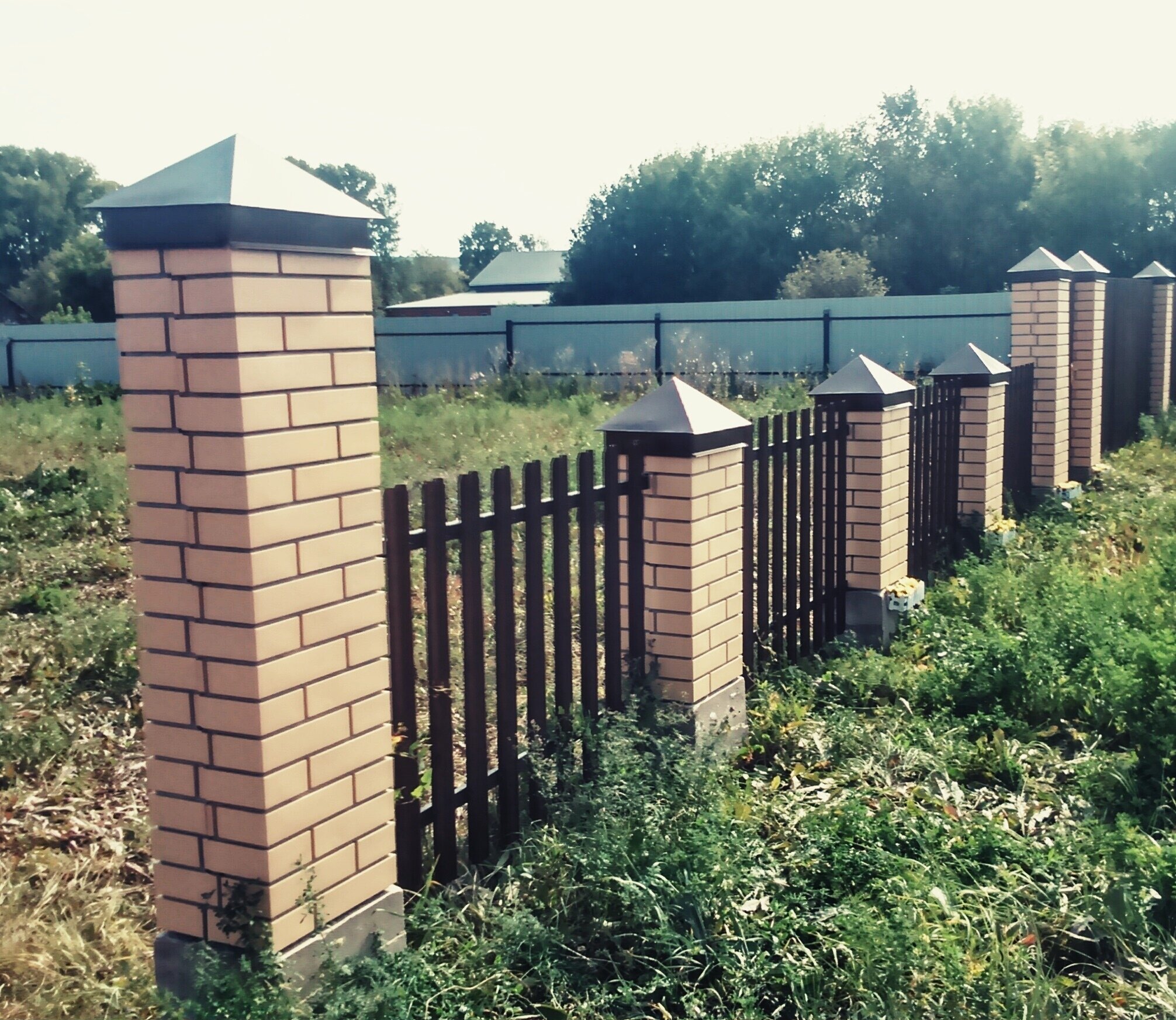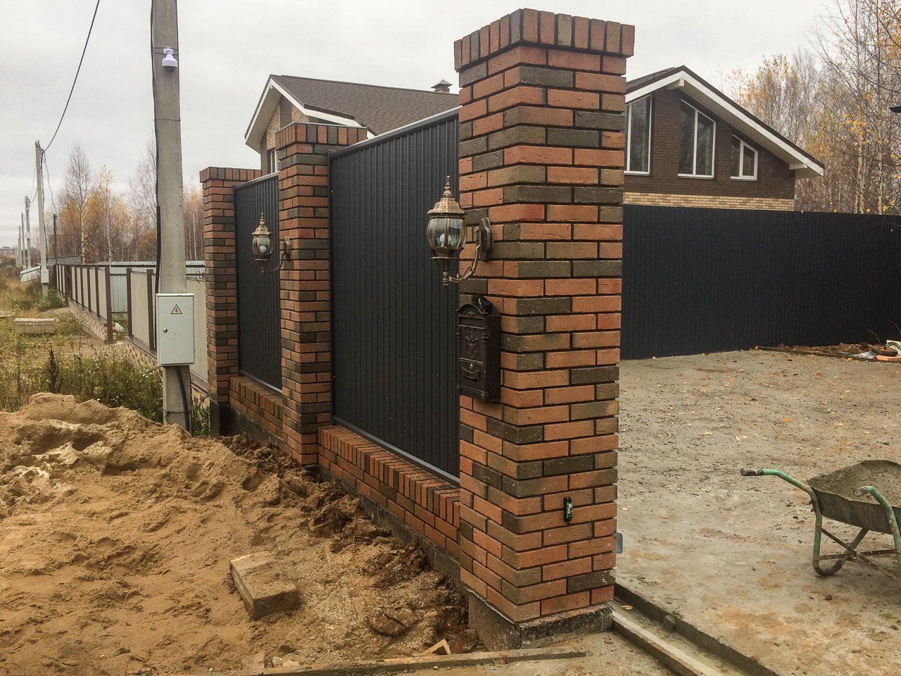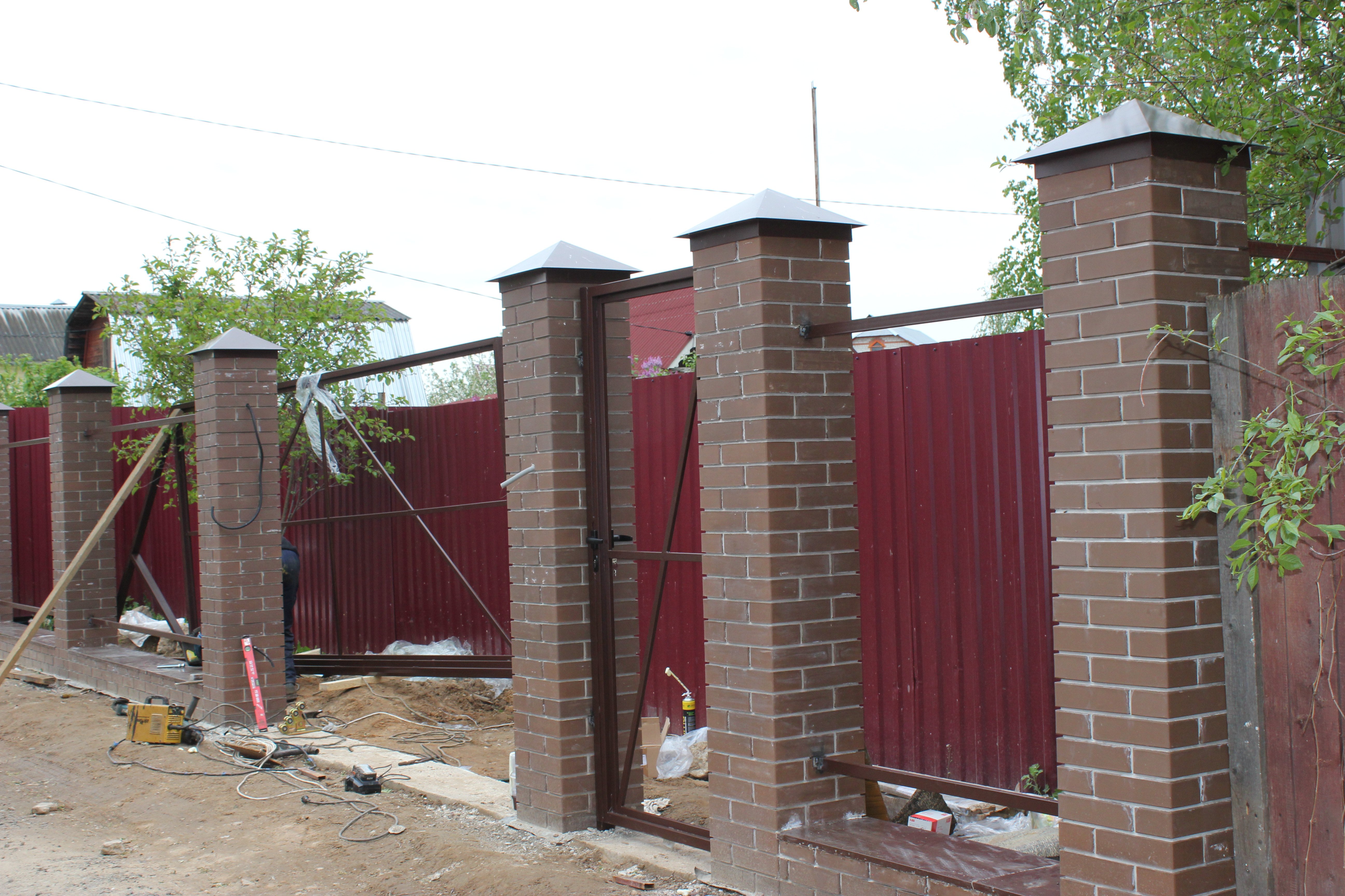 Забор кирпичные столбы RAL 8017 , профлист RAL 7024