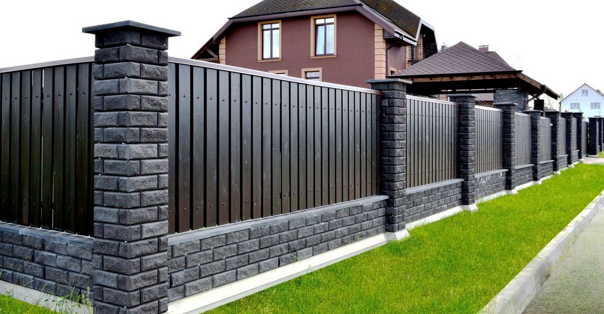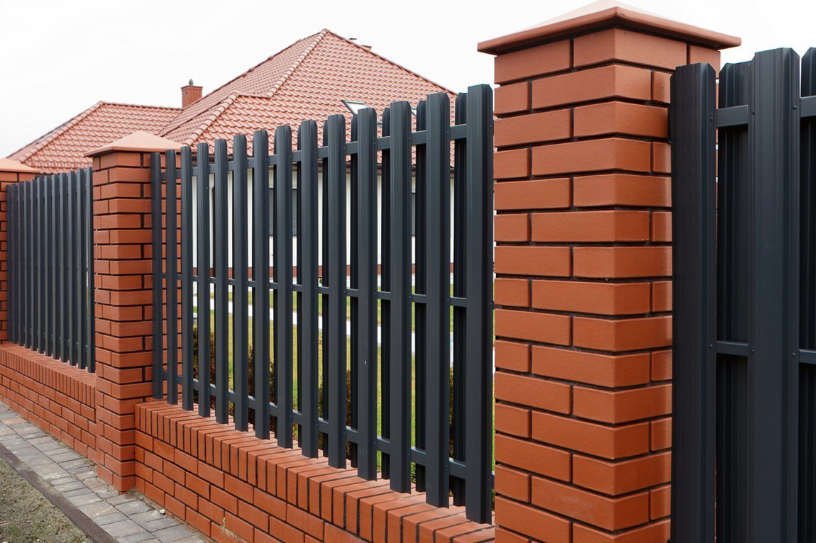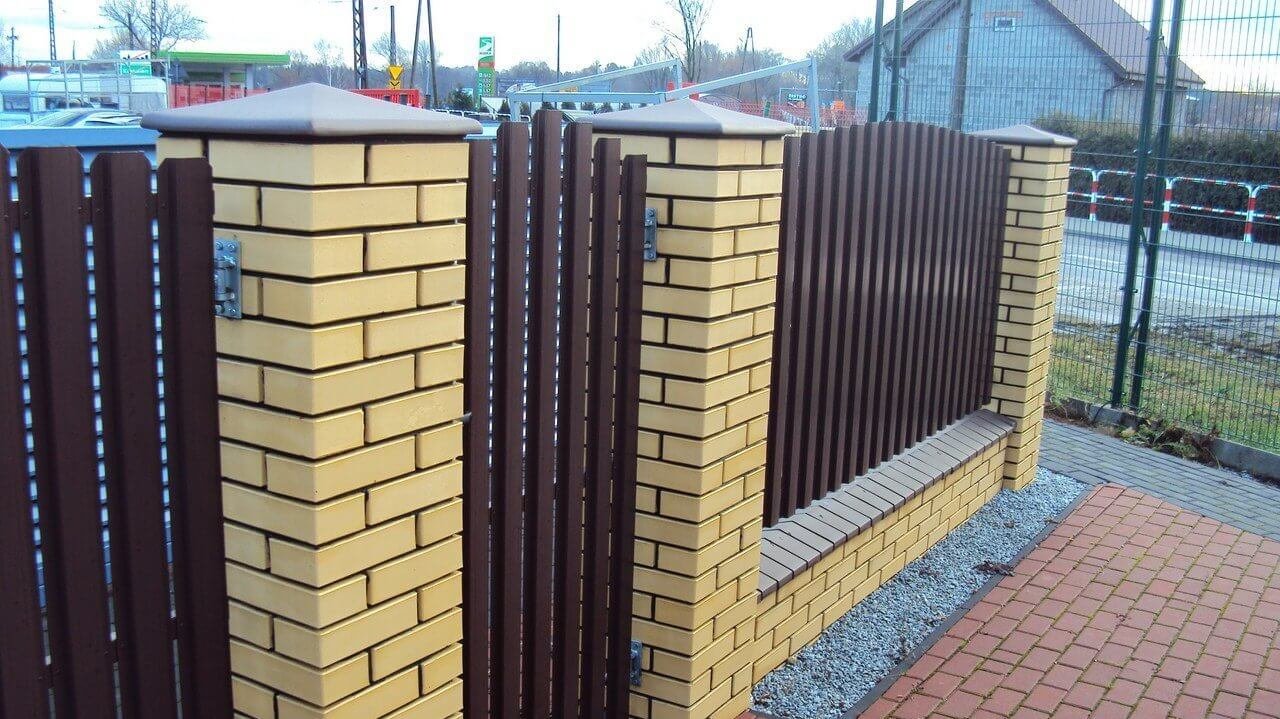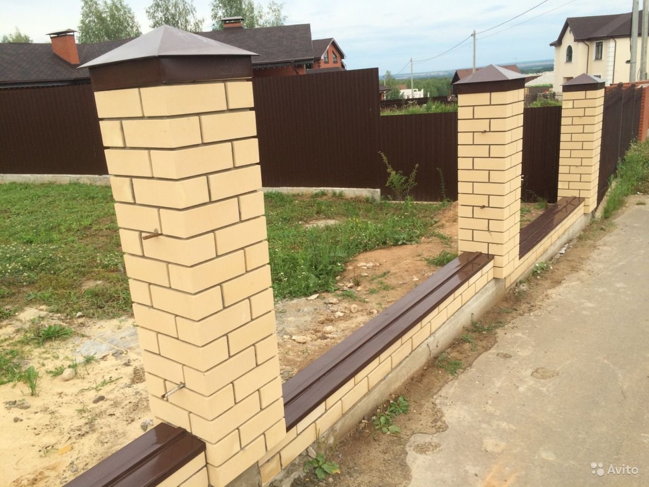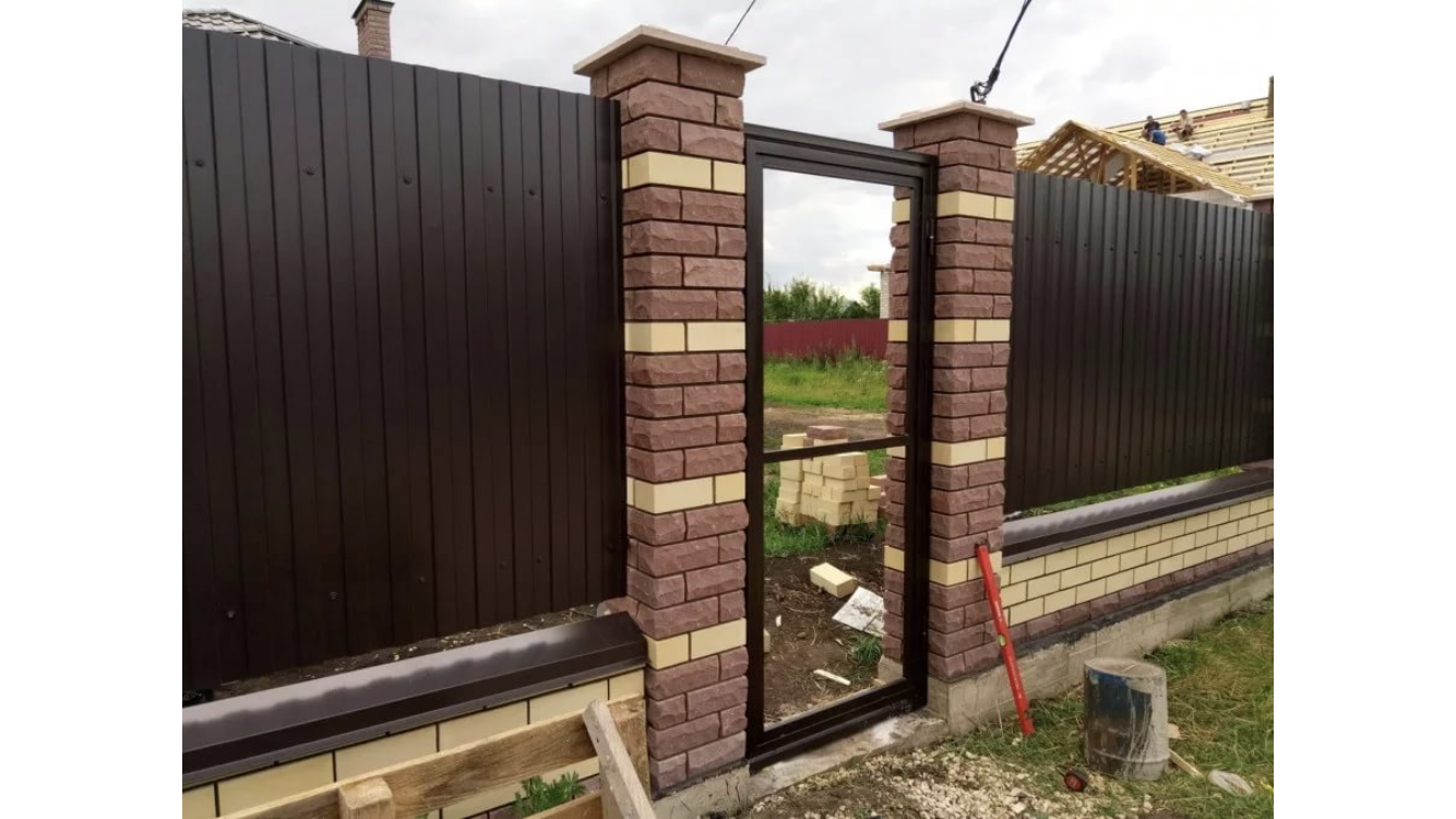 Забор кирпичные столбы RAL 8017 , профлист RAL 7024