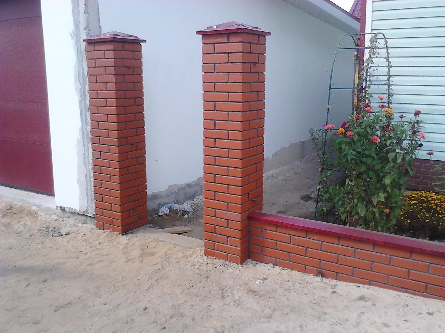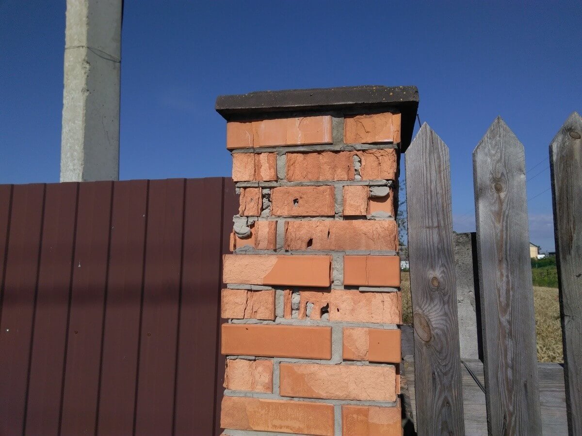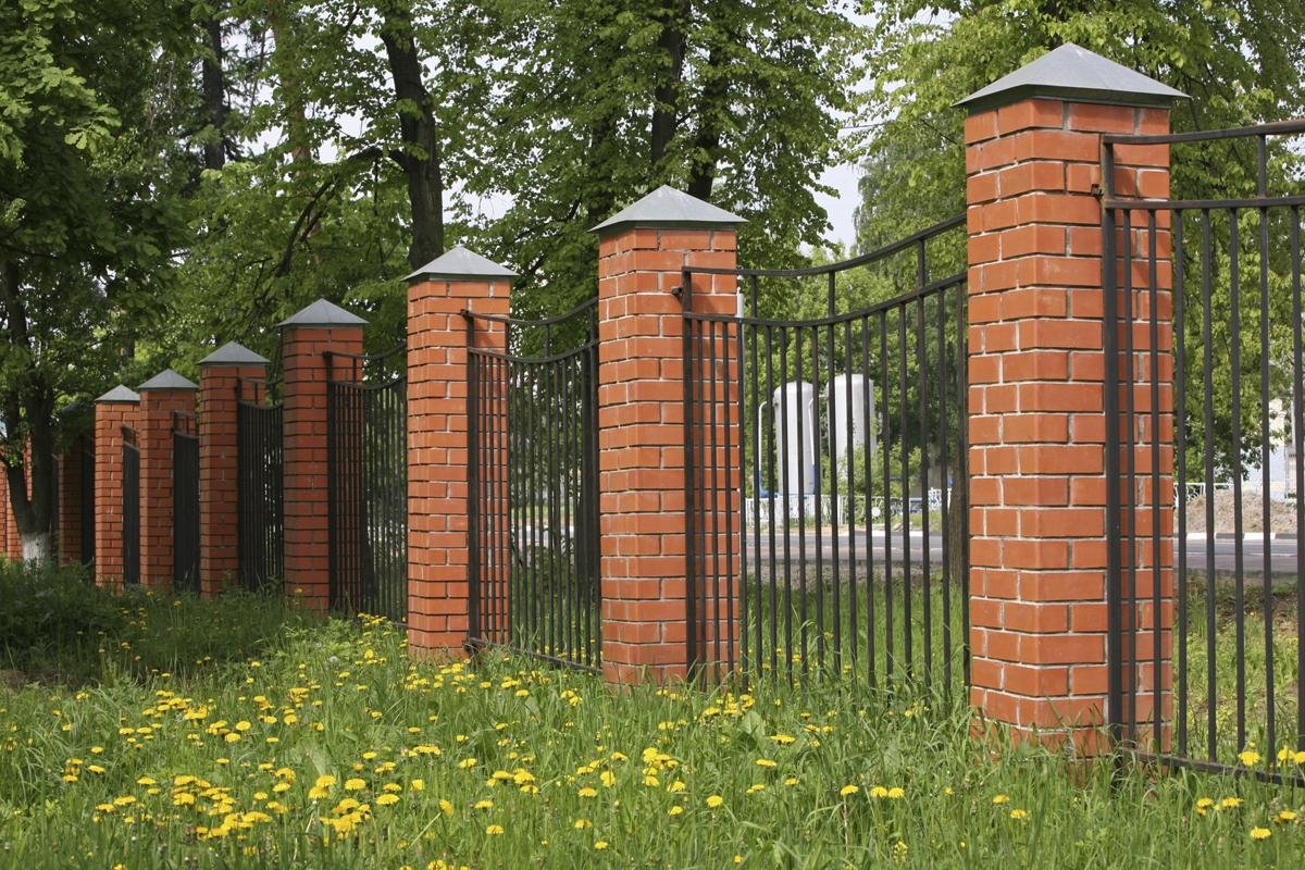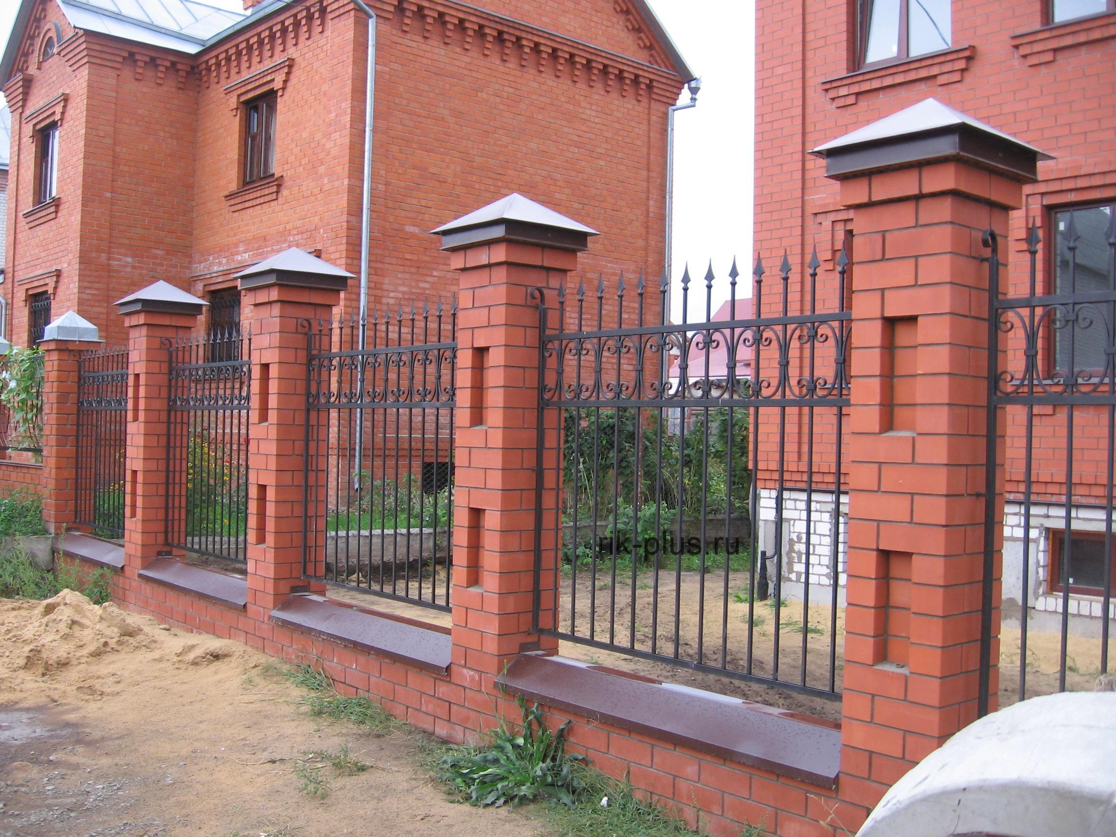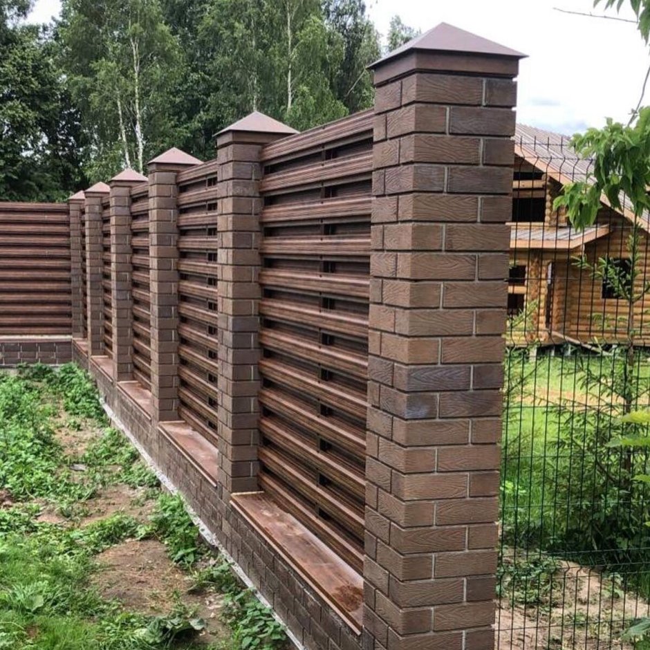 Забор кирпичные столбы RAL 8017 , профлист RAL 7024