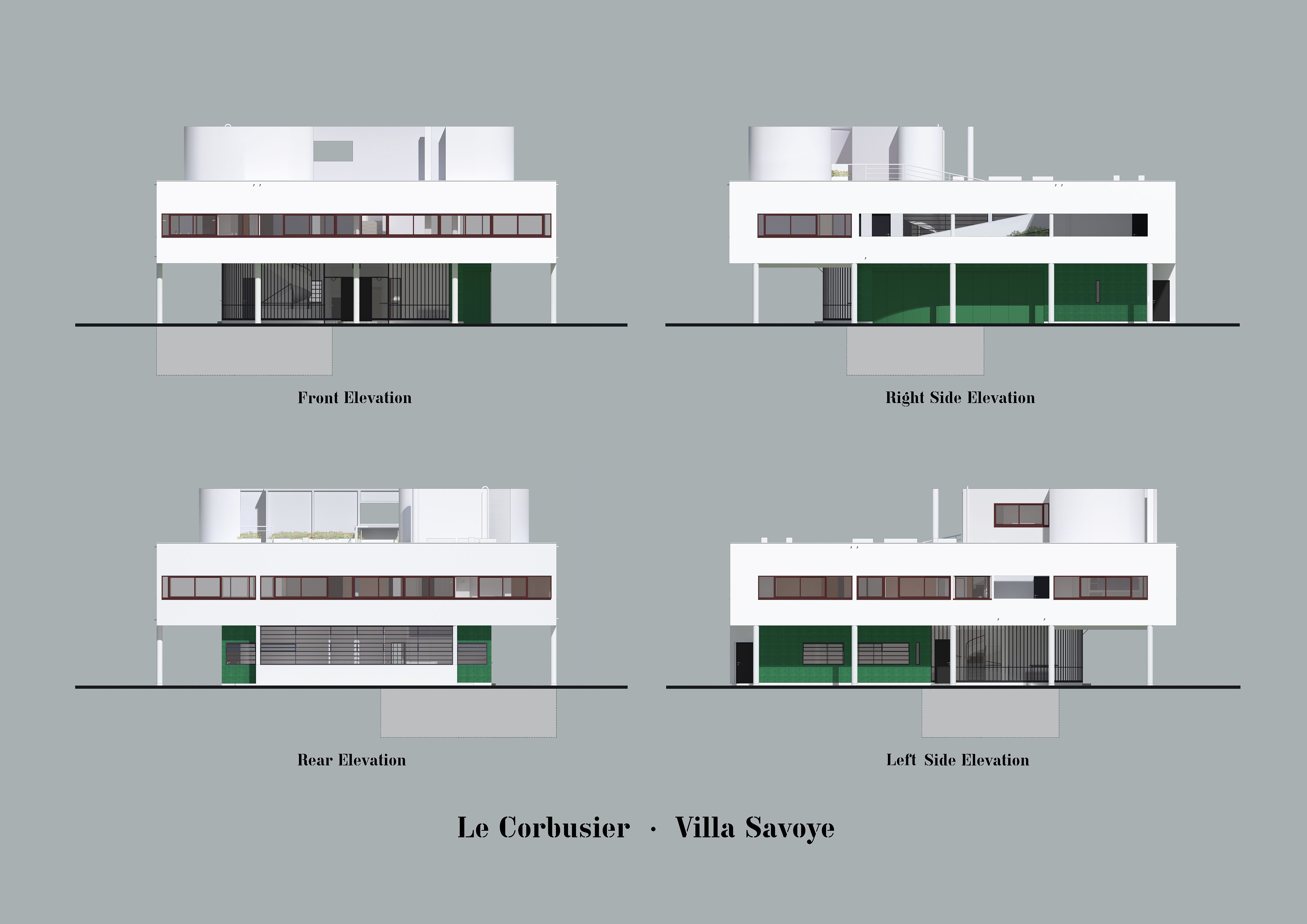 Ле Корбюзье вилла Савой чертежи фасадов
