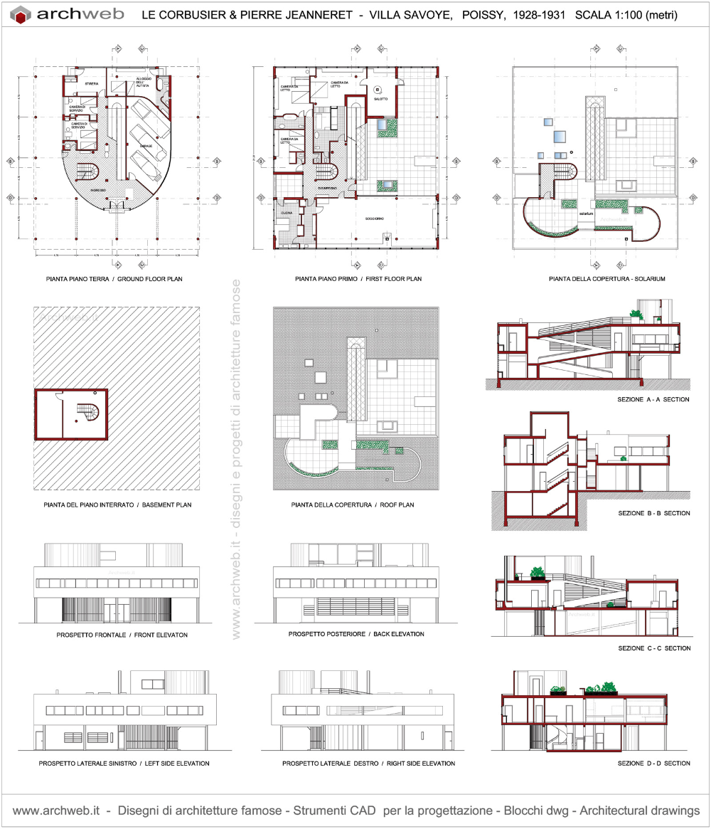 Вилла Савой Ле Корбюзье чертежи разрез