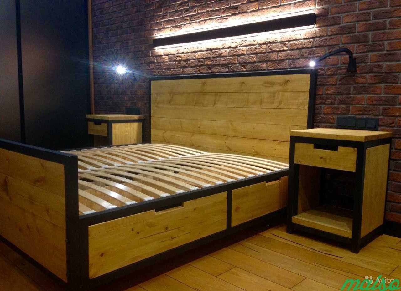 Кровати из массива дерева в стиле лофт