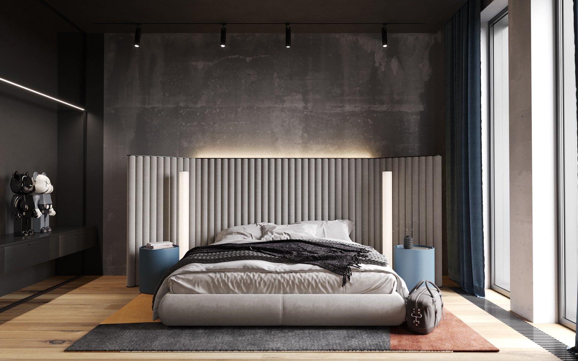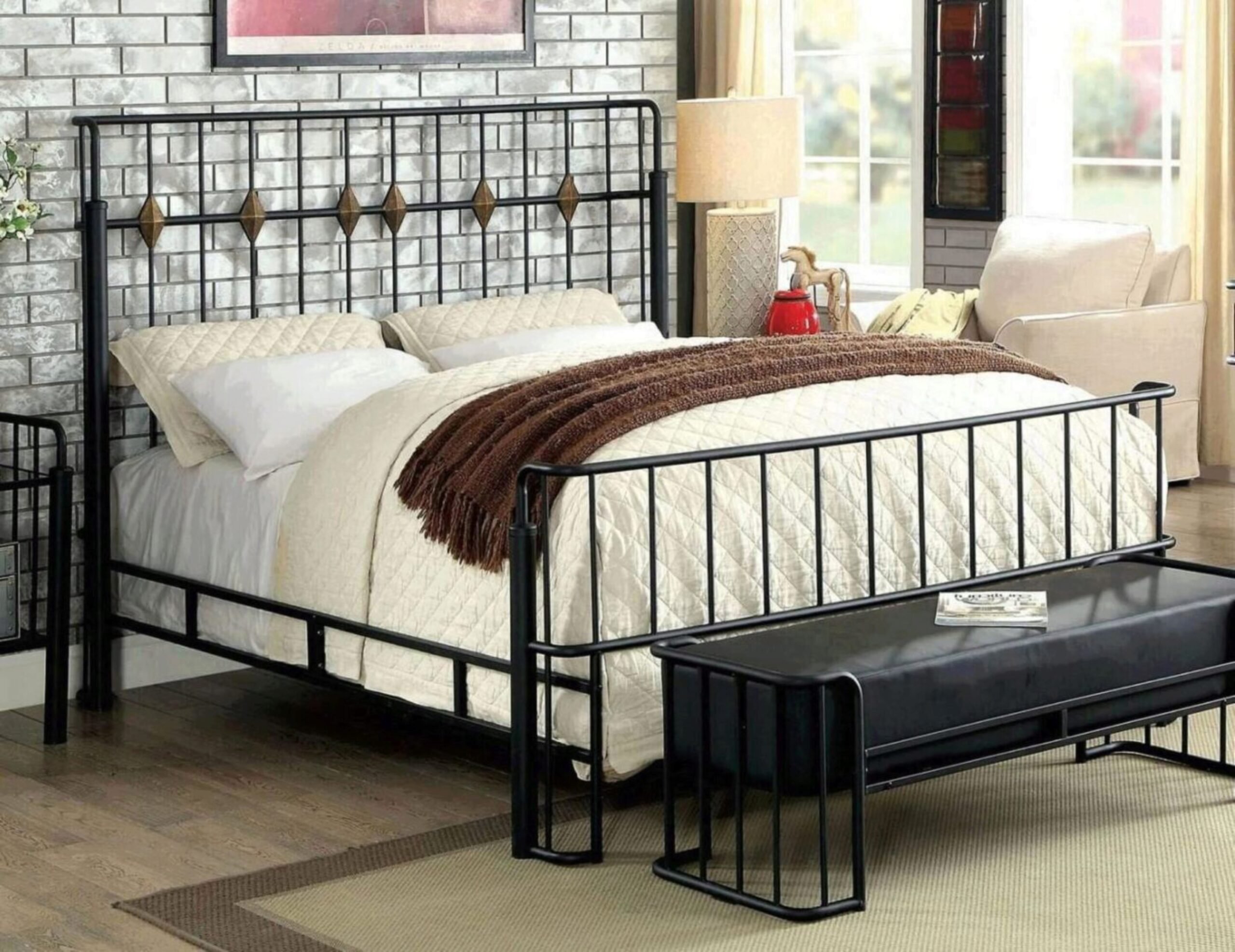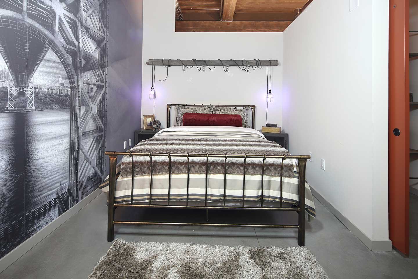 Спальня в стиле лофт с железной кроватью