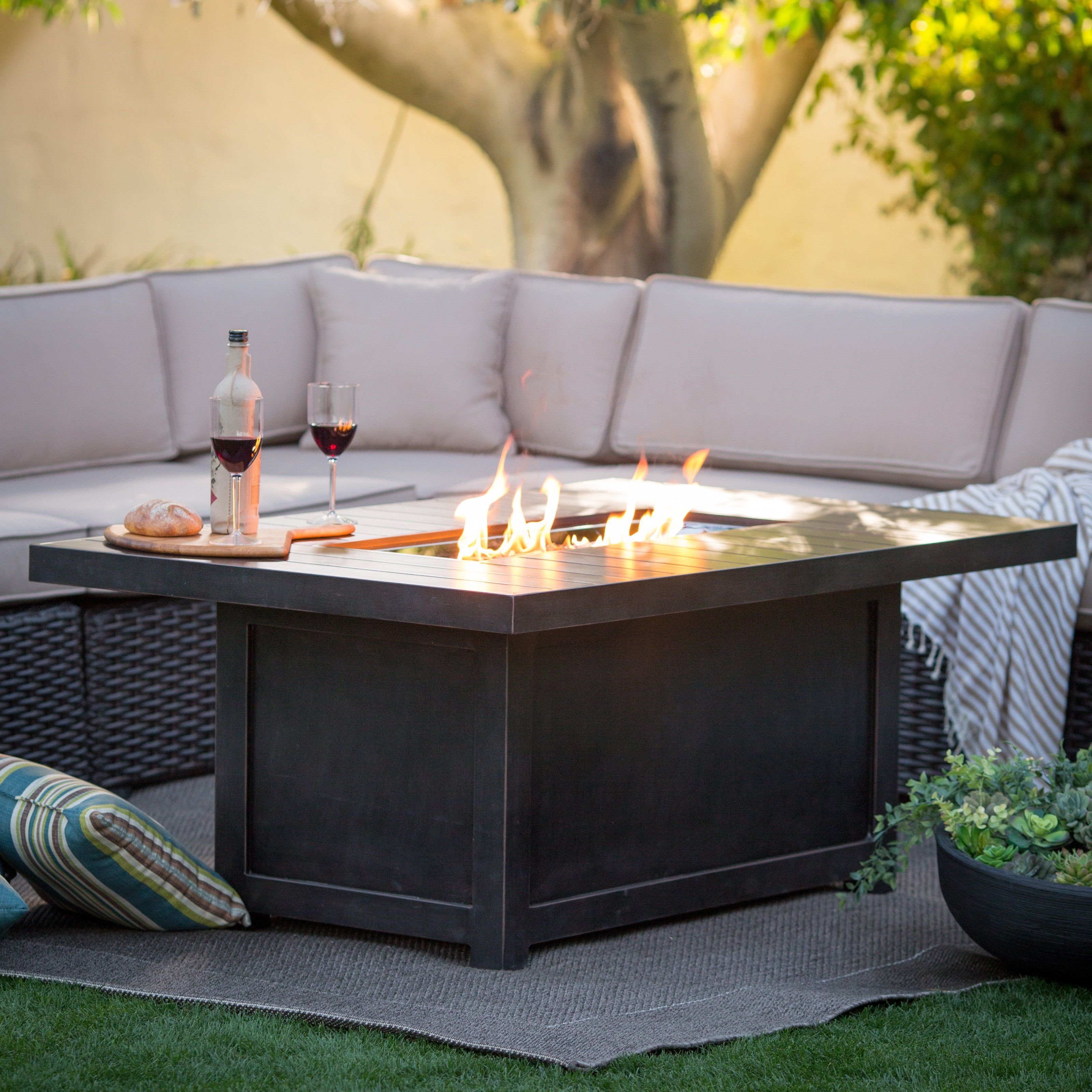 Стол с камином уличный сверху