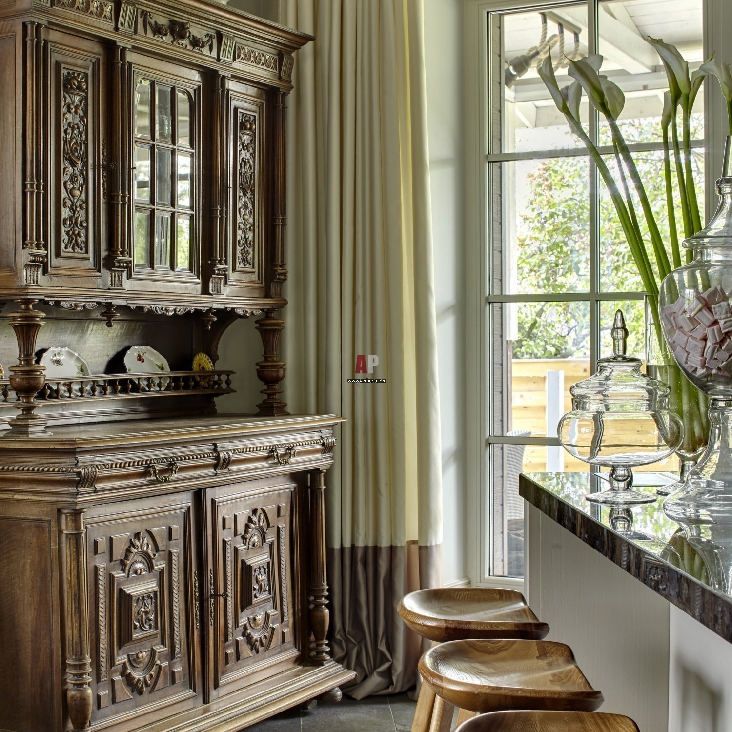 Старинный буфет в современном интерьере