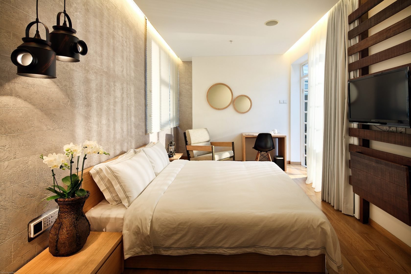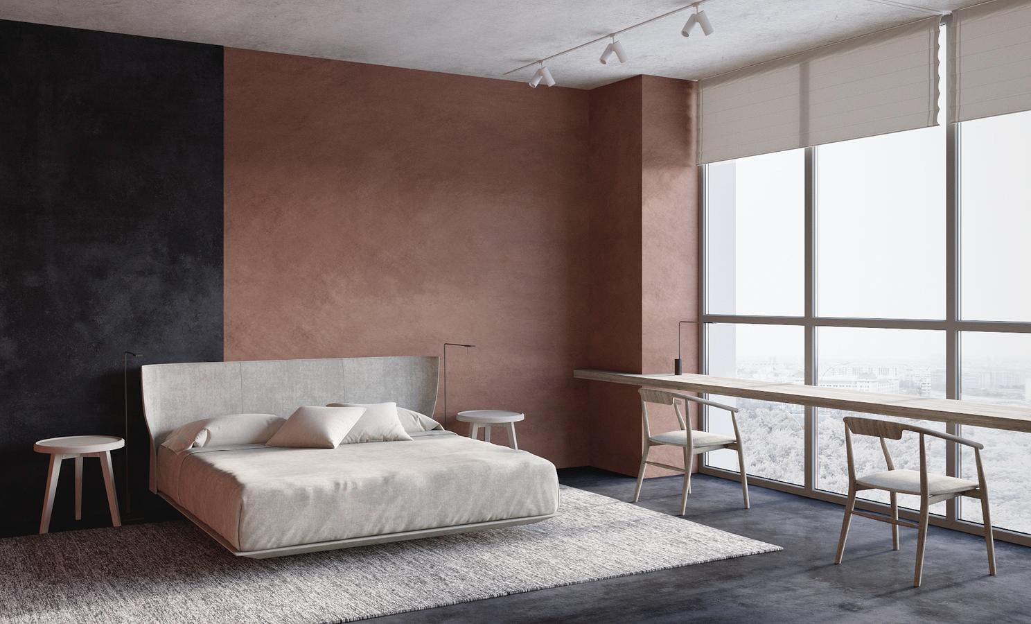 Штукатурка в интерьере спальни