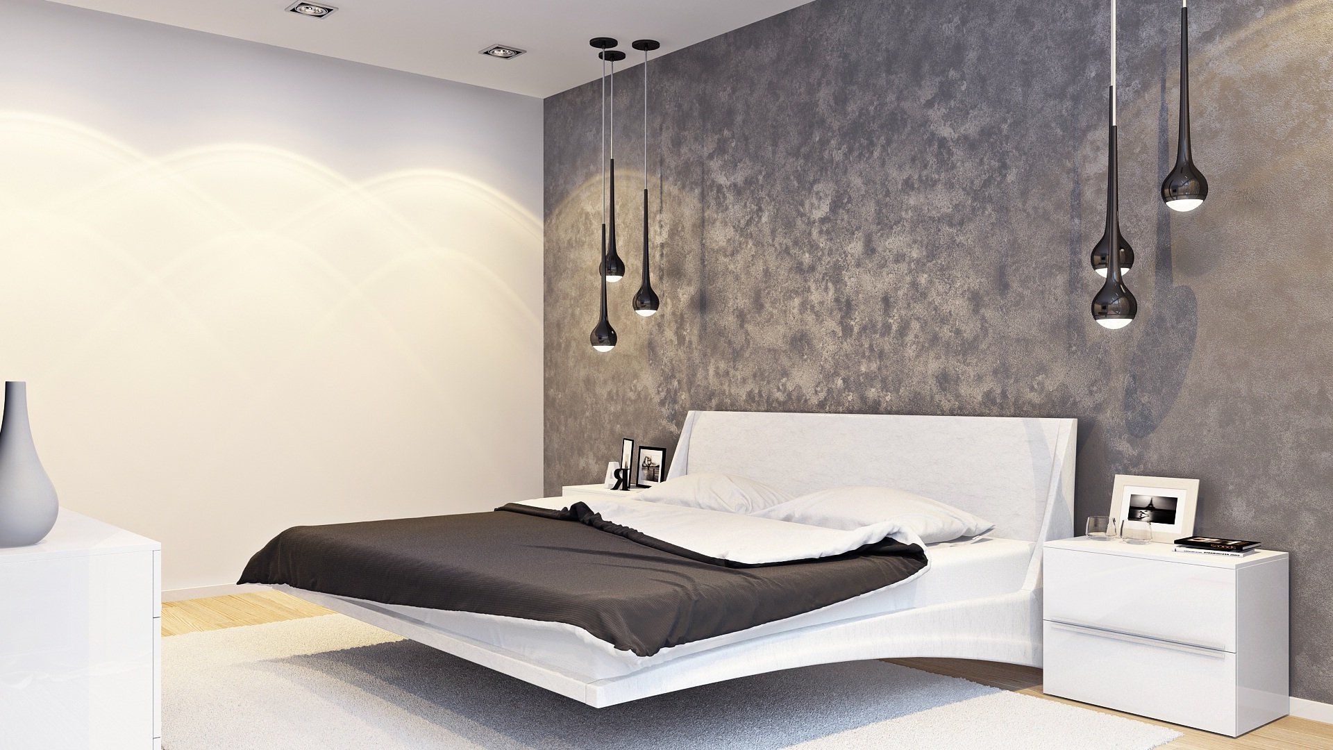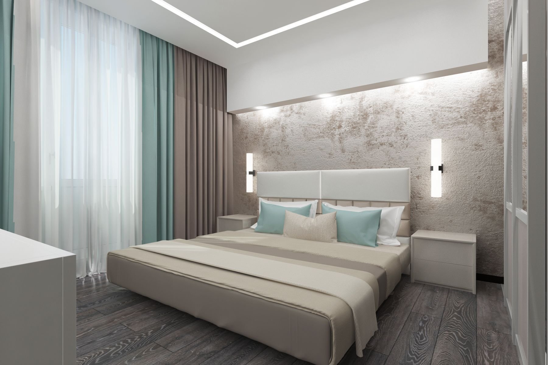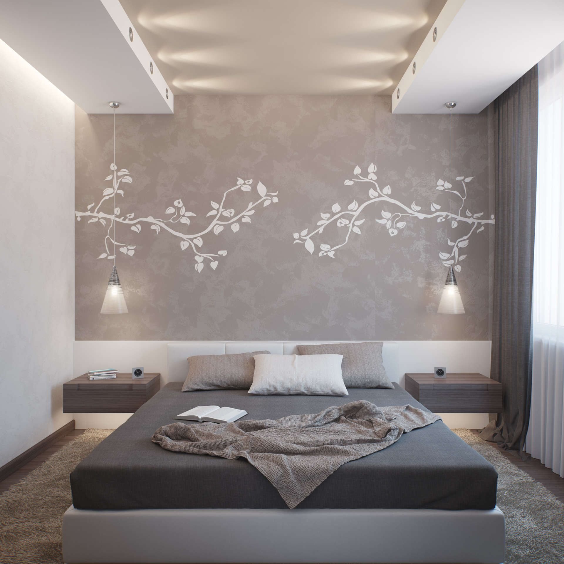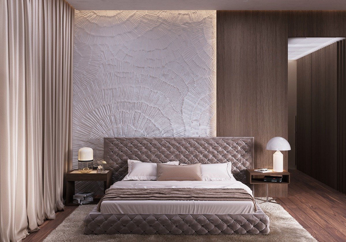 Декоративная штукатурка в современном интерьере спальни